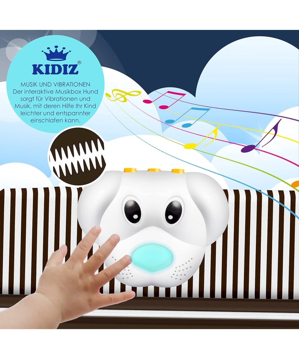 Le lit pour enfant est livré avec un jouet électronique qui joue une mélodie très apaisante et transforme le lit en berceau apaisant grâce à des vibrations agréables qui bercera votre enfant doucement dans son sommeil. Grâce à la table à langer intégrée avec une surface anti-salissures, le lit offre toujours un endroit pour changer les couches lors de vos déplacements.
