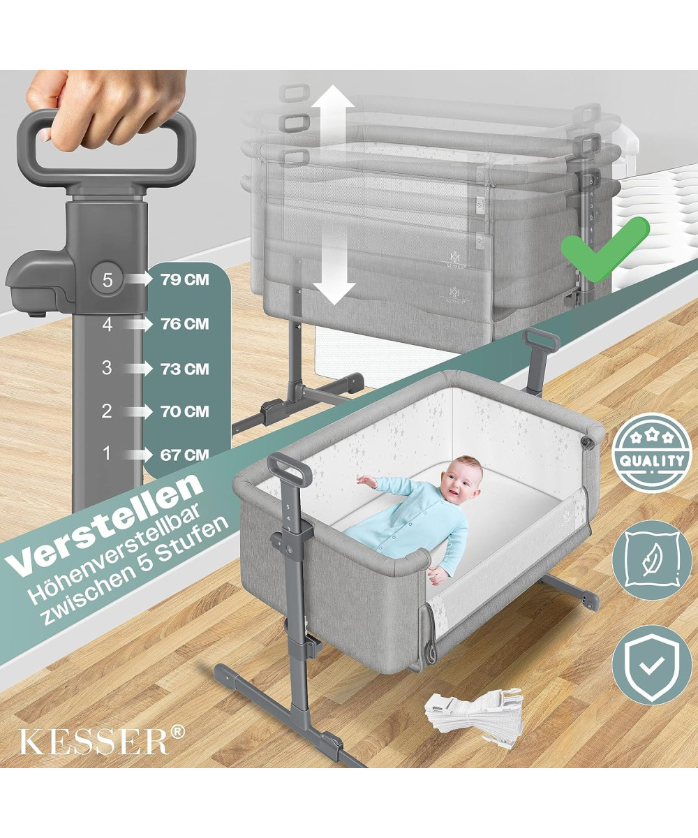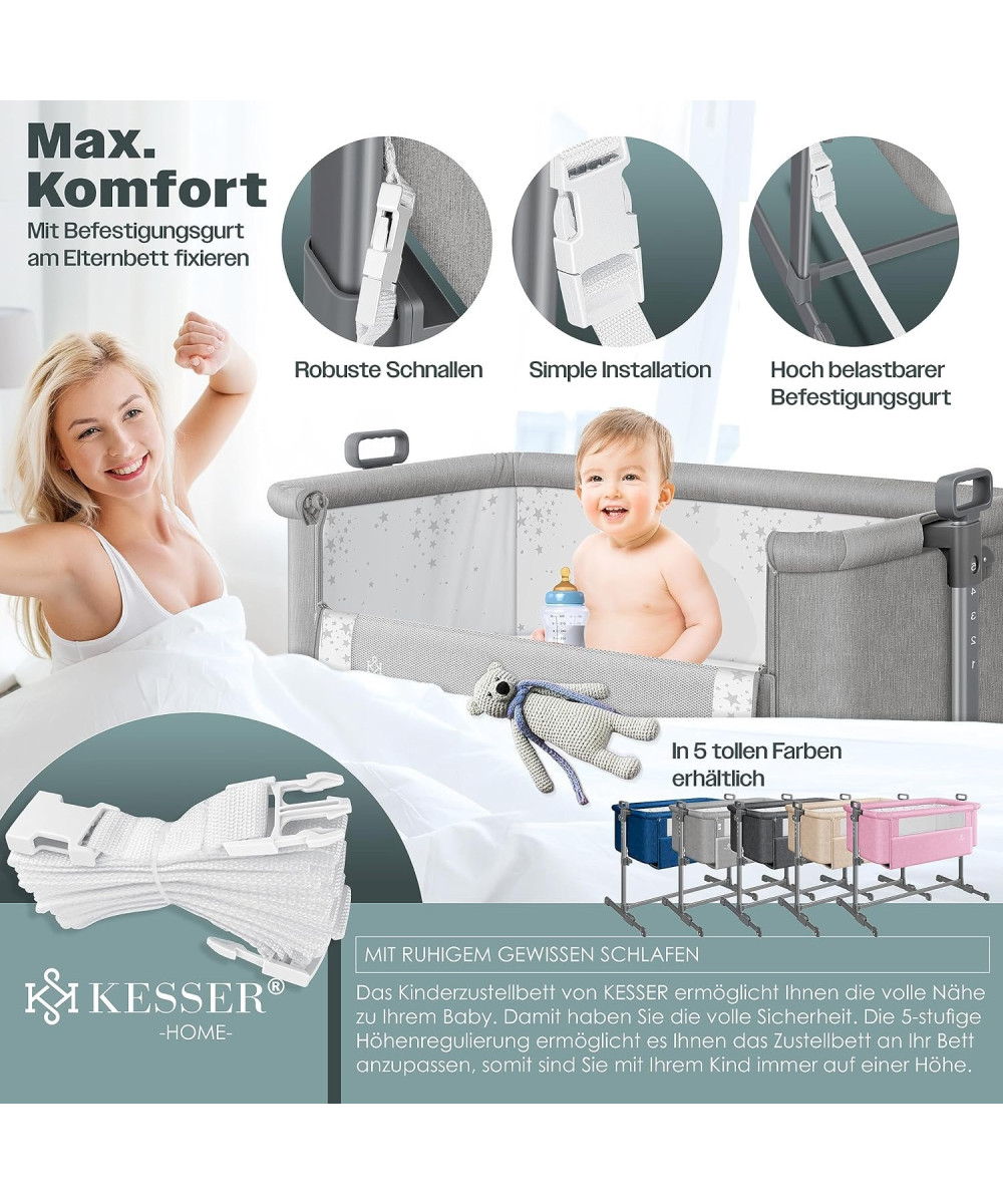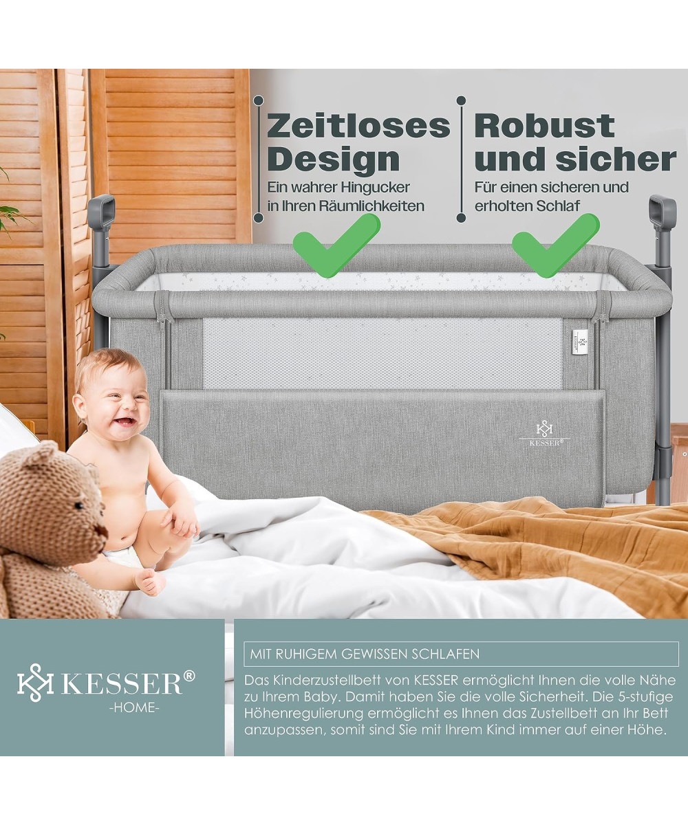 KESSER Lit d’appoint Hubi 3 en 1 - Lit supplémentaire pour bébé Gris Clair