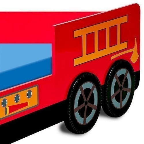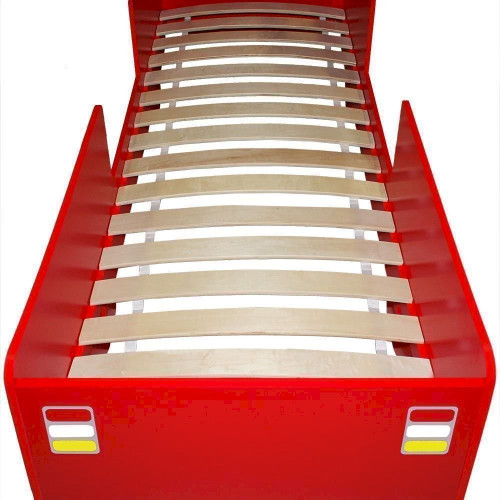 - Lit en forme de camion de pompier rouge avec sommier à lattes