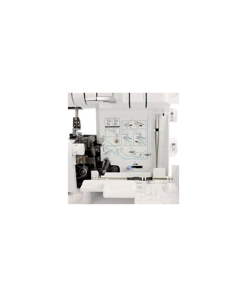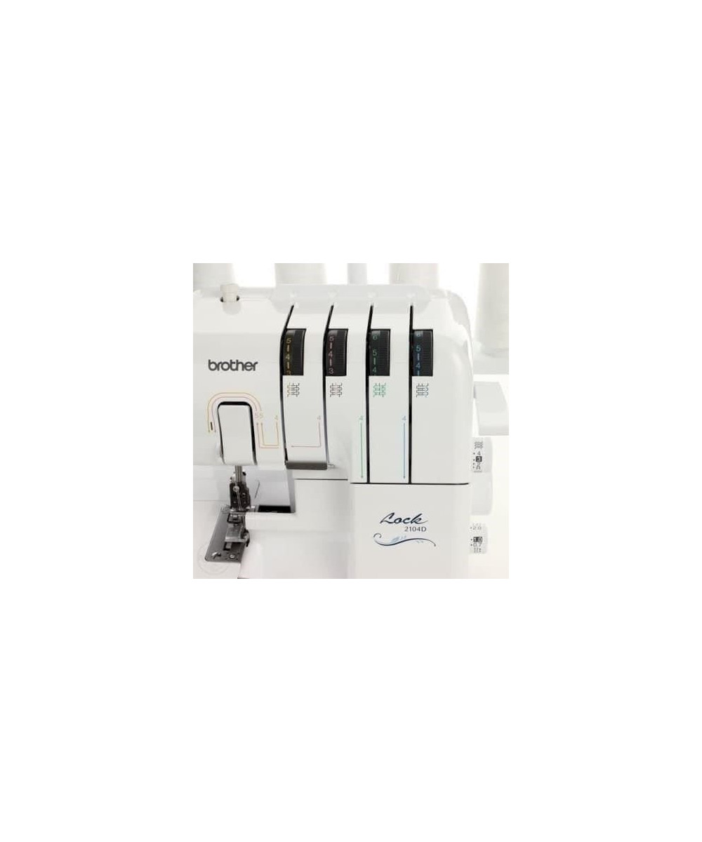 Surjeteuse Brother 2104D 2104D surjeteuse 3 et 4 fils Première surjeteuse de la gamme, elle vous permettra d'effectuer des finitions impeccables sur tous types de tissus (extensibles ou non). Avec son enfilage simplifié et son CD rom de formation, elle conviendra très bien aux couturières débutantes. Caractéristiques: Couture en bras libre ou à plat Pression du pied de biche réglable Enfilage simplifié par code couleur Enfilage rapide et simplifié du boucleur inférieur Largeur réglable de 5 à 7 mm Couteau supérieur amovible Pied de biche encliquetableÉclairage LEDBoite d'accessoires intégréeLongueur & largeur du point différentiel plus faciles d'accès. Eclairage LED Possibilité d'ourlet rouloté Simplicité d'enfilage et d'utilisation Transport différentiel Rapport qualité prix Accessoires : Modèle livré avec une housse, une pochette pour accessoires, des pinces, un filet, un disque bloque-bobine, une brosse de nettoyage, un tournevis hexagonal, un jeu d'aiguilles, une pédale. Garantie 5 ans (assistance téléphonique, pièces , main-d'uvre, frais de transport - aller/retour - uniquement pour la France métropolitaine, la Corse et la Belgique).