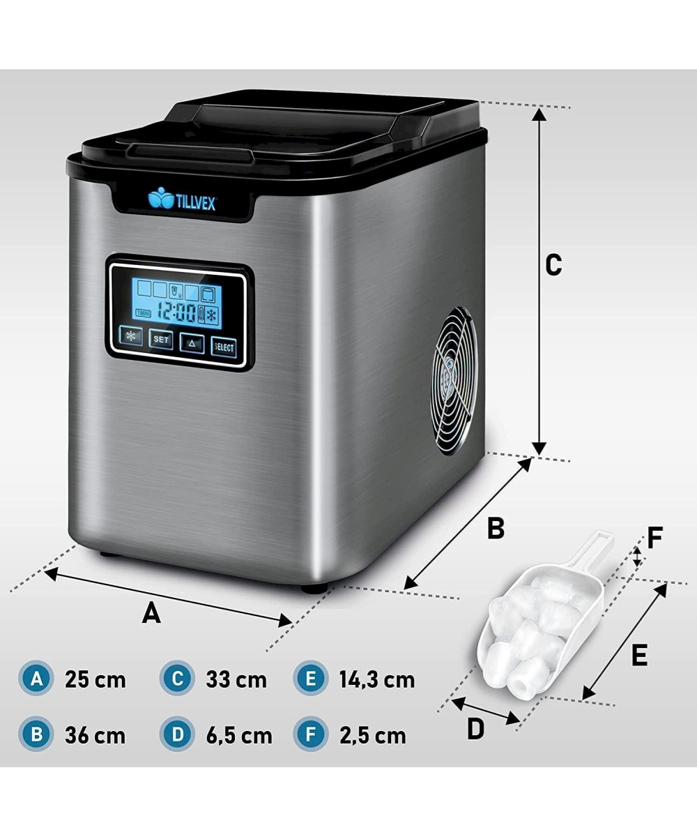 tillvex® Machine à glaçons en inox 2,2 litres Ice Maker Argent