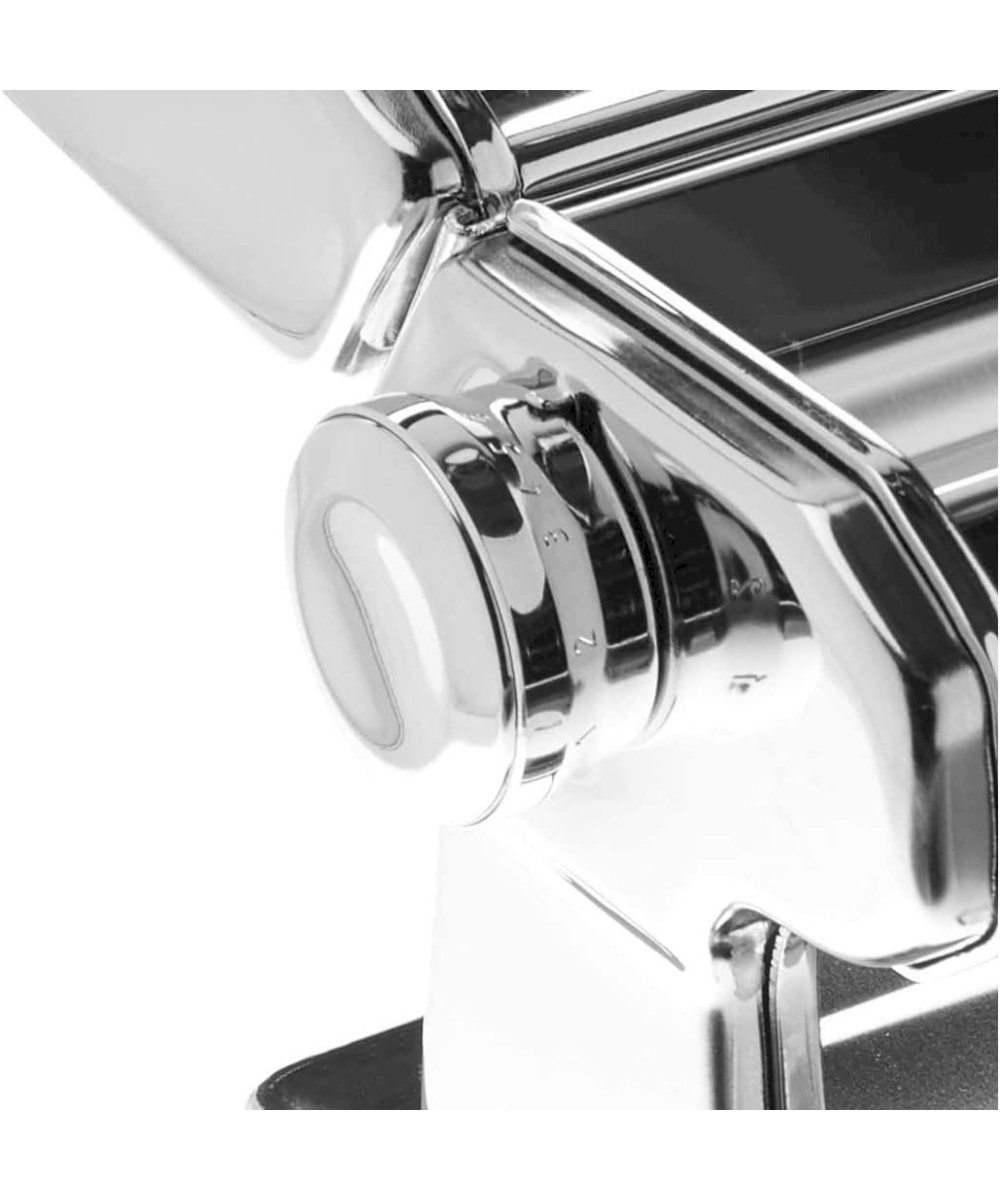 La manivelle, facile à empoigner, rend la préparation plus aisée, et le régulateur, avec ses 10 positions bien visibles, garantit un choix immédiat de l'épaisseur des pâtes. - Stabilité
