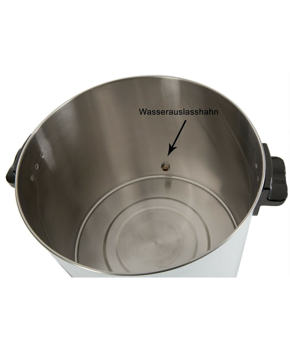 Les éléments chauffants cachés permettent même de préparer ou de garder au chaud des aliments tels que la goulache. Doté d'un robinet maniable, ce système de mise en conserve d’Arebos peut également être utilisé comme distributeur de boissons chaudes . Que ce soit du vin chaud ou de la bière chaude, du café ou du thé - n'importe quel type de boisson peut être versé dans la marmite sans aucun débordement.