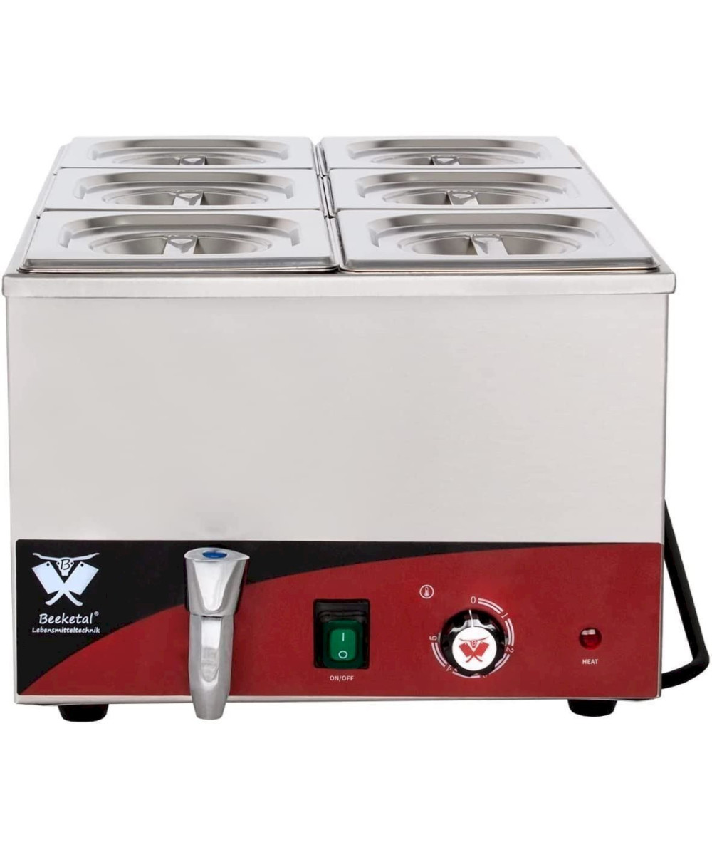 Beeketal BBM6 Speisenwärmer Wasserbad Bain Marie inkl. 6 x Behälter und Deckel