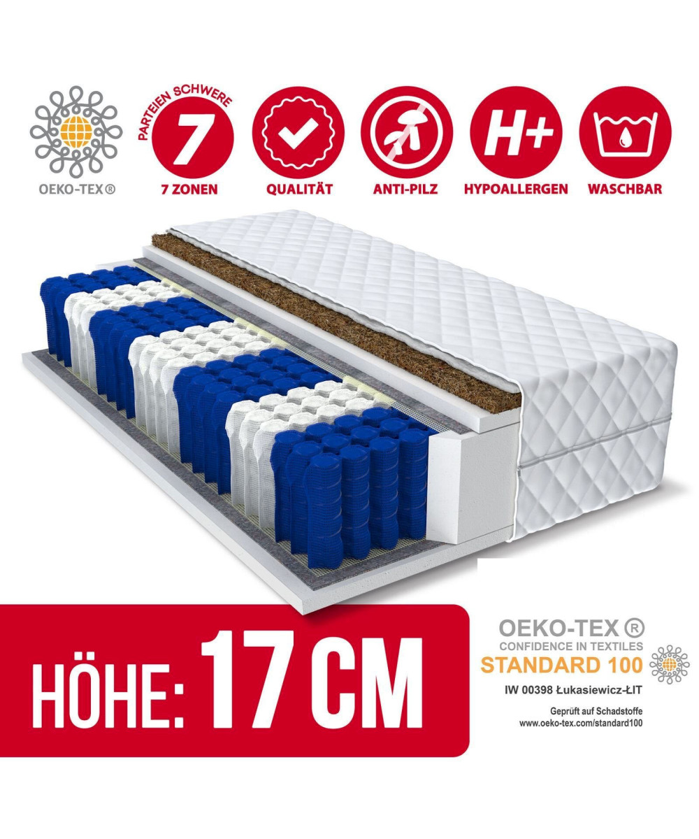 FDM Matratze 80x200 Taschenfederkern 7 Zonen Kokos HOME Plus 17 cm Premium H3 Bett