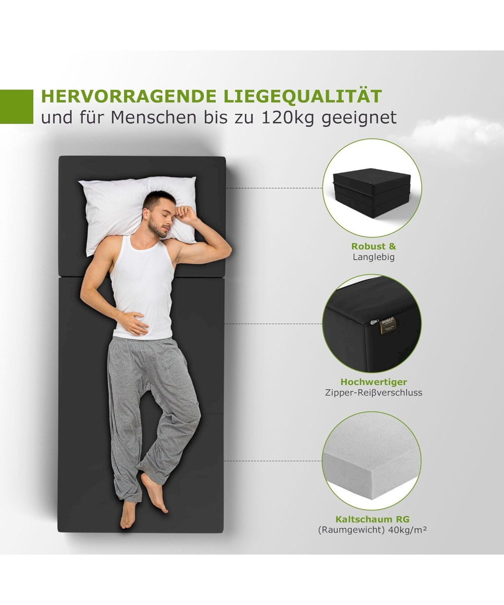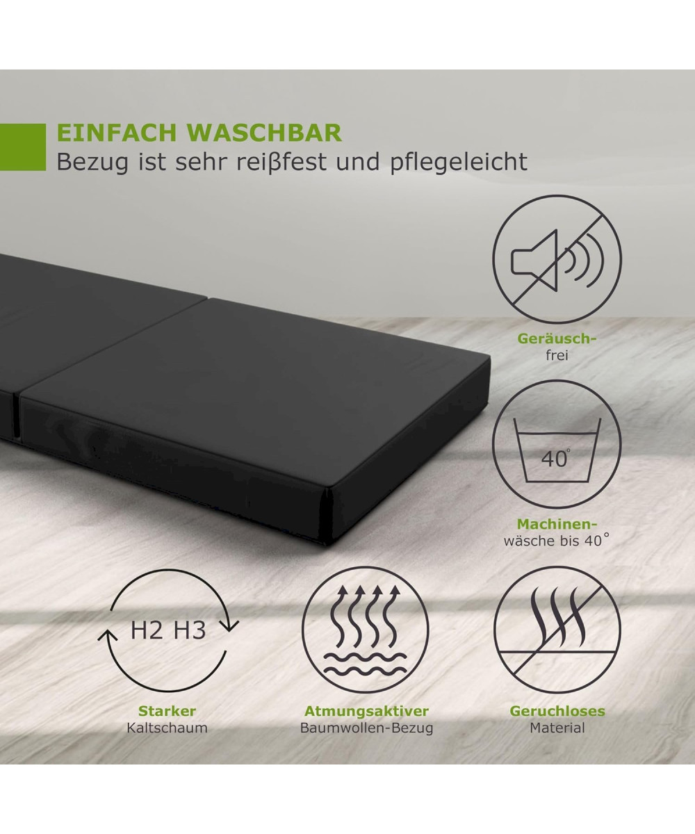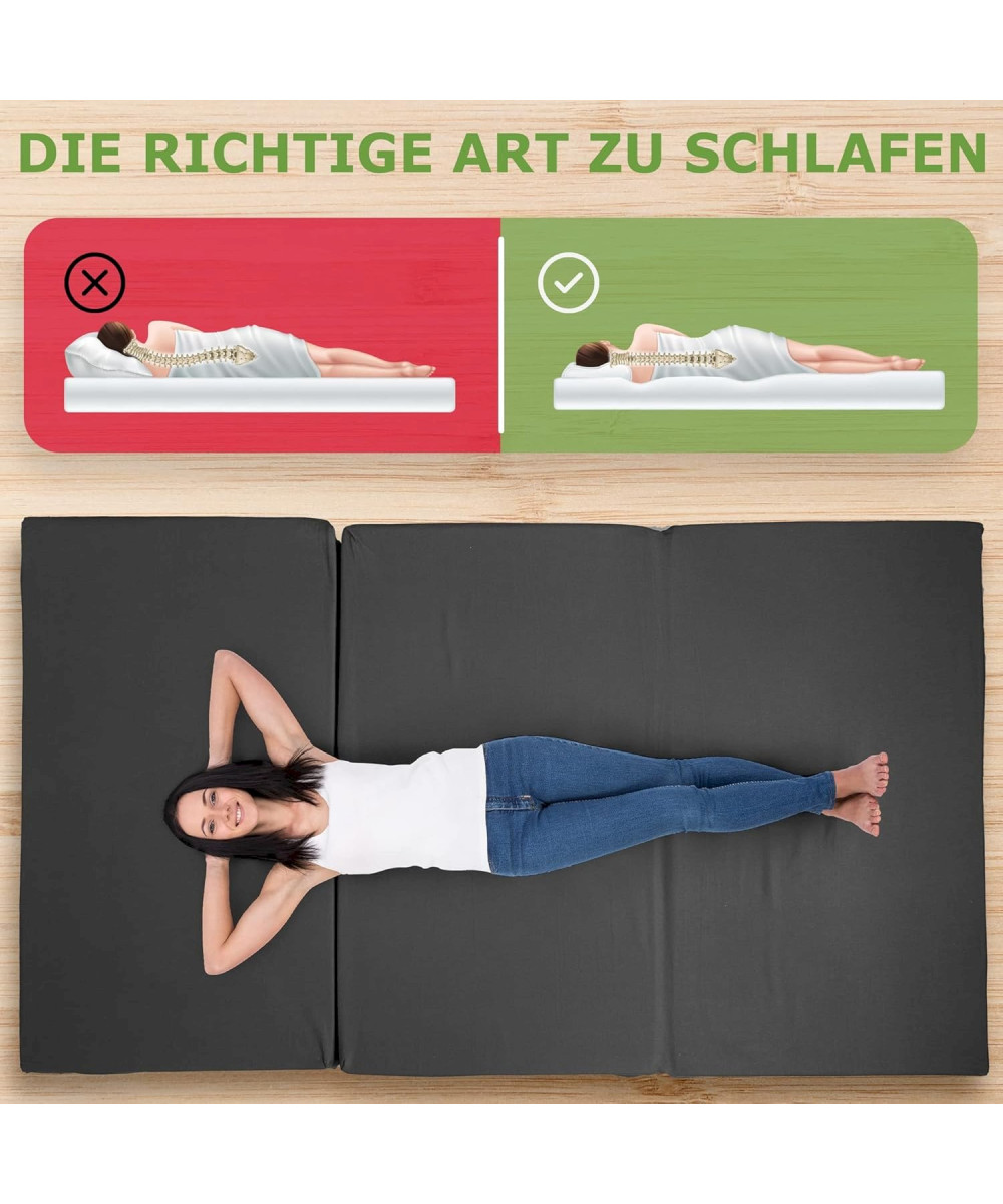 - Robuste pour les adultes et les enfants : notre matelas pliant est extrêmement robuste et convient parfaitement comme lit d'invité ou lit de voyage parfait. Il est pliable en 3 parties et pratique à ranger. Notre matelas pliant offre d'excellentes propriétés de couchage et convient aux personnes pesant jusqu'à 120 kg