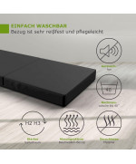 - Housse lavable à 40 °C : notre matelas pliant est équipé d'une housse en 100 % coton doux pour la peau. La housse est prélavée et disponible dans les couleurs anthracite, bleu et rouge. Veuillez noter que la housse rétrécit légèrement après le premier lavage. Cependant, ce n'est pas un défaut de qualité, mais un processus normal qui assure un meilleur ajustement de la housse