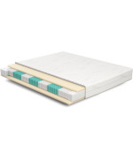Die Matratze SERA im Härtegrad 3 ist eine mittel bis mittelfeste in 7-Zonen-Komfort unterteilte Matratze mit einem Tonnentaschenfederkern (TTFK) und einer 4cm hohen, anschmiegsamen und beidseitig verwendbaren Kaltschaumauflage. Sera ist keine sehr feste, aber auch keine sehr weiche Matratze. Aufgrund ihres 22cm großen und ihres mehrschichtigen Aufbaus in verschiedenen Drahtstärken stützt die TTFK-Matratze Ihren Körper punktgenau und elastisch ab, egal ob Sie bevorzugt in der Rücken-, Bauch- oder Seitenlage schlafen. Gleichzeitig bietet die Matratze eine luftdurchlässige Struktur, die den Feuchtigkeitstransport beschleunigt und den Wärmestau im Bett verhindert. Wegen ihrer festen stützenden Liegeeigenschaften und ihrer hohen Punktelastizität ist die Matratze SERA (H3) 270x200 für Gewichtsklassen Körpergewicht bis 100 kg ideal.