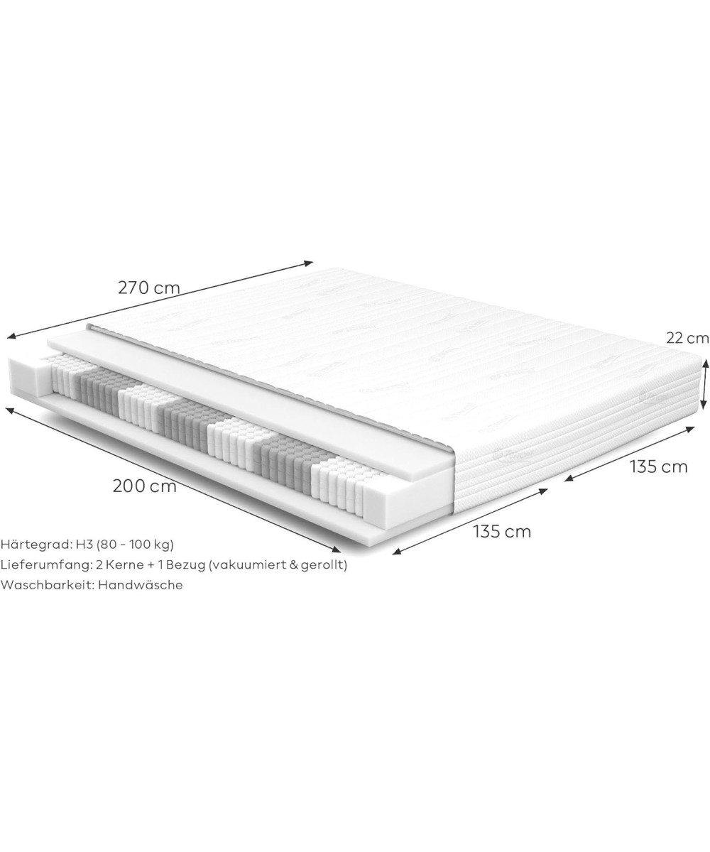 SERA H3 matelas à ressorts ensachés 270 x 200 x 22 cm