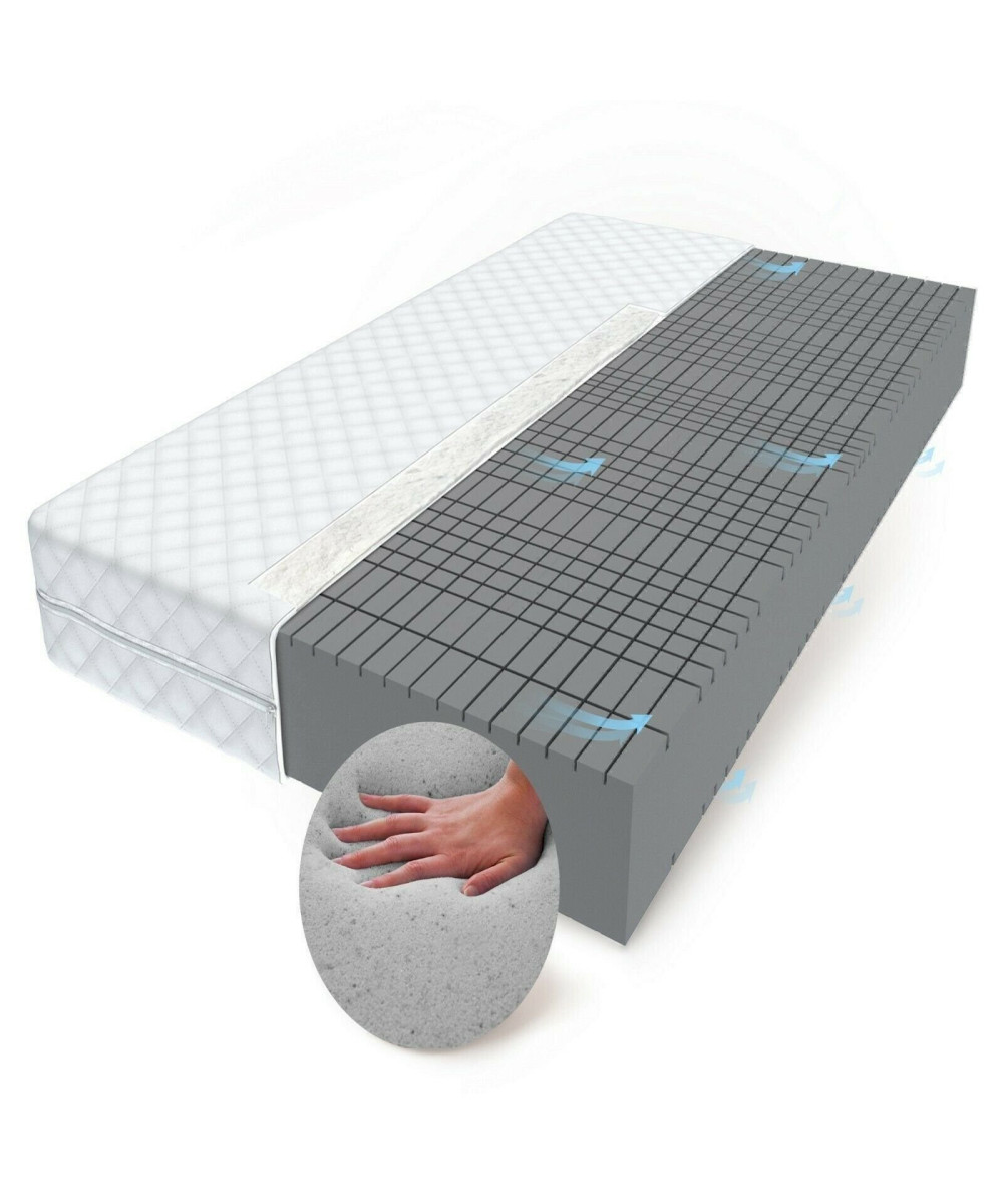 Der Konturschnitt in Form eines Gitters, mit unterschiedlichen Härten, zeichnet sich durch orthopädische Eigenschaften aus.