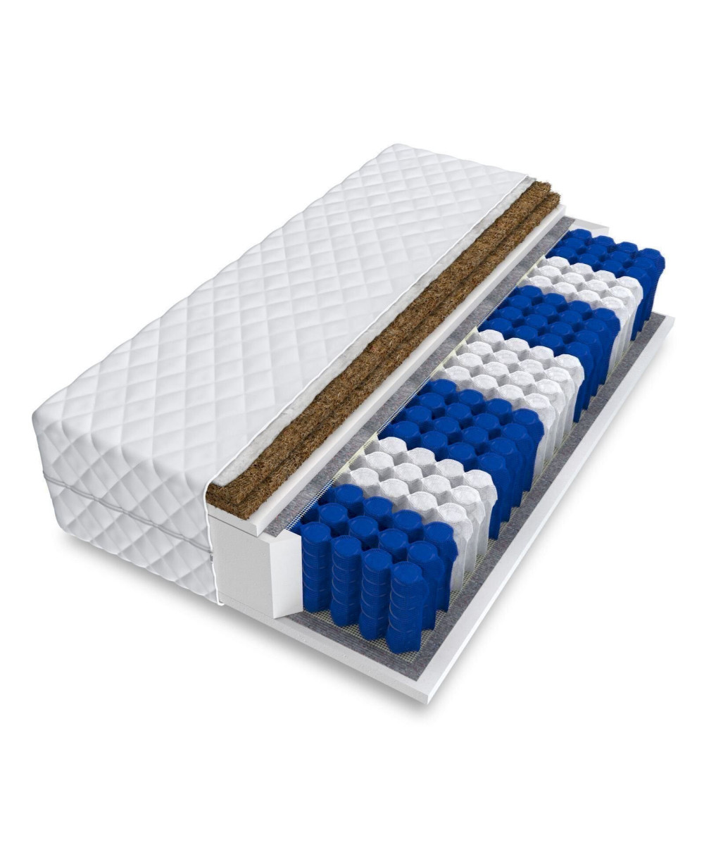 In diesem Modell wurde unter anderem auch Kokosfaser verwendet. Kokosfaser gehört zu den zähesten natürlichen Rohstoffen und besitzt antiallergische und Anti-Pilz Eigenschaften. Die Kokosfasern sind leicht und sehr luftig, daher verbessert sich die Luftzirkulation im Inneren der Matratze. Die Verwendung von Kokosfasern versteift die Matratze.