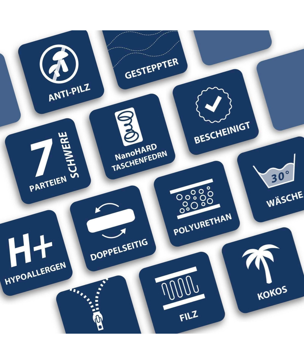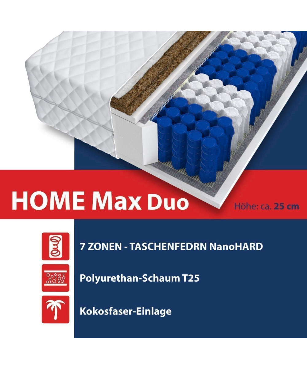 FDM HOMEMAXDUO-180-200 Matratze 180x200 HOME MAX DUO 25cm 7 Zonen H3 H4 Premium Taschenfederkern KOKOS