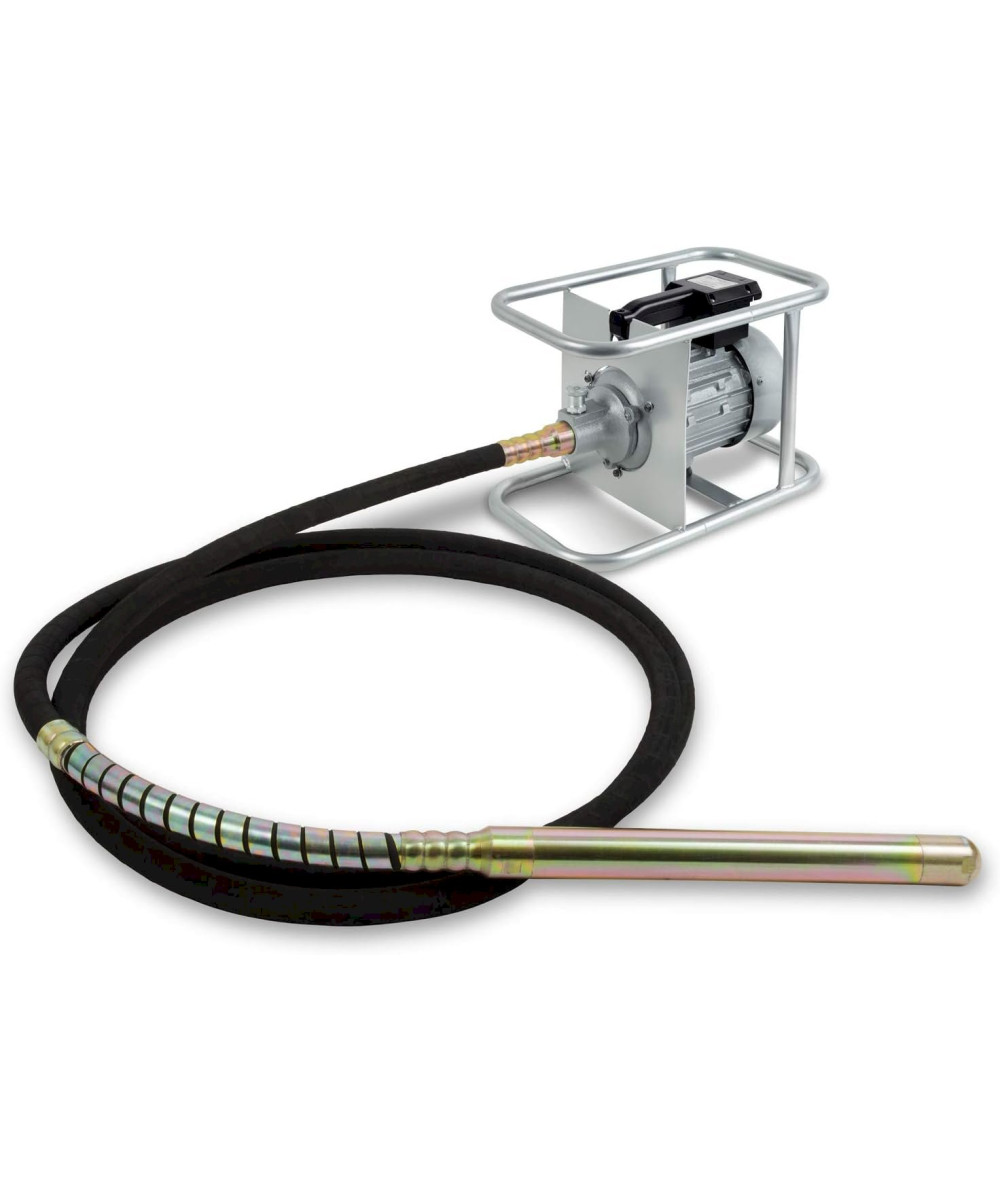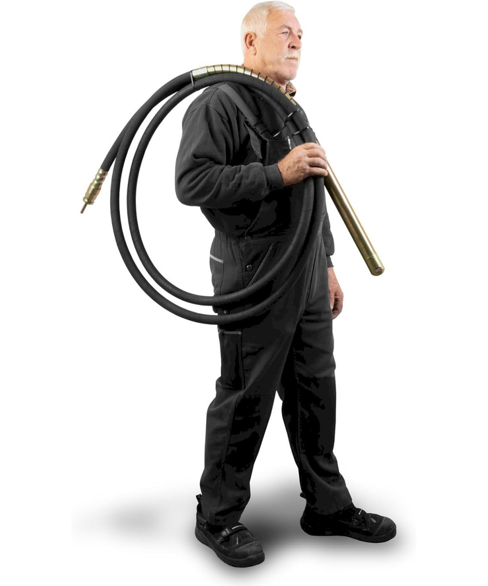 - DÉTAILS: L'arbre flexible est protégé par diverses gaines en plastique. La tête vibrante en acier est traitée thermiquement et comprend un balourd oscillant. Le tuyau a une longueur de 6 m et la tête vibrante en acier renforcé a un diamètre de 45 mm