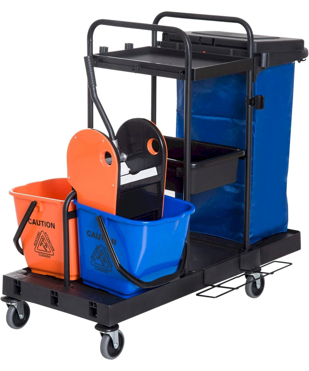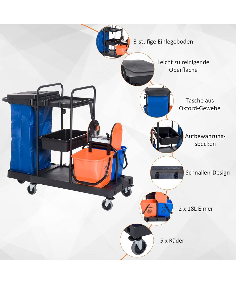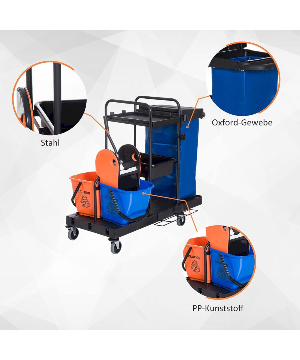 HOMCOM Putzwagen Reinigungswagen Wischwagen Systemwagen Schwarz+Blau+Orange 111 × 63,3 × 103 cm