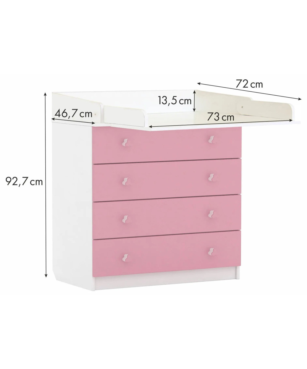 La table à langer pratique aux belles finitions facilite la toilette de bébé. Les divers tiroirs et rangements permettent de trier tous les accessoires de lange pour garder les mains libres pour s'occuper pleinement de bébé. Les 4 tiroirs présentent un large espace de rangement. Les tiroirs s'ouvrent/se referment facilement grâce à des glissières.