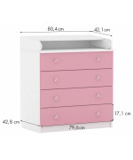 Polini Kids Simple 1580 commode à langer blanc-rose