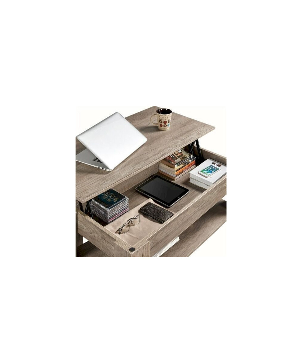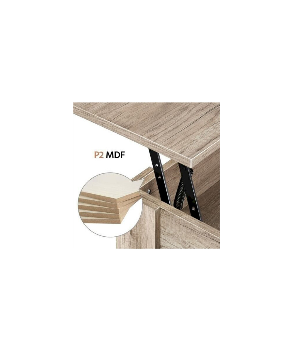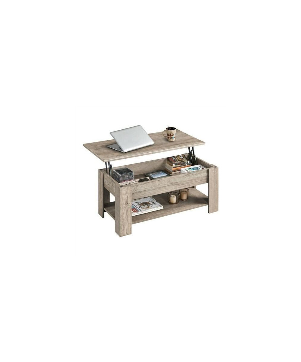 Table Basse Relevable Table de Salon en bois Compartiment Caché 1 Etagère Modern 98x50cm chêne