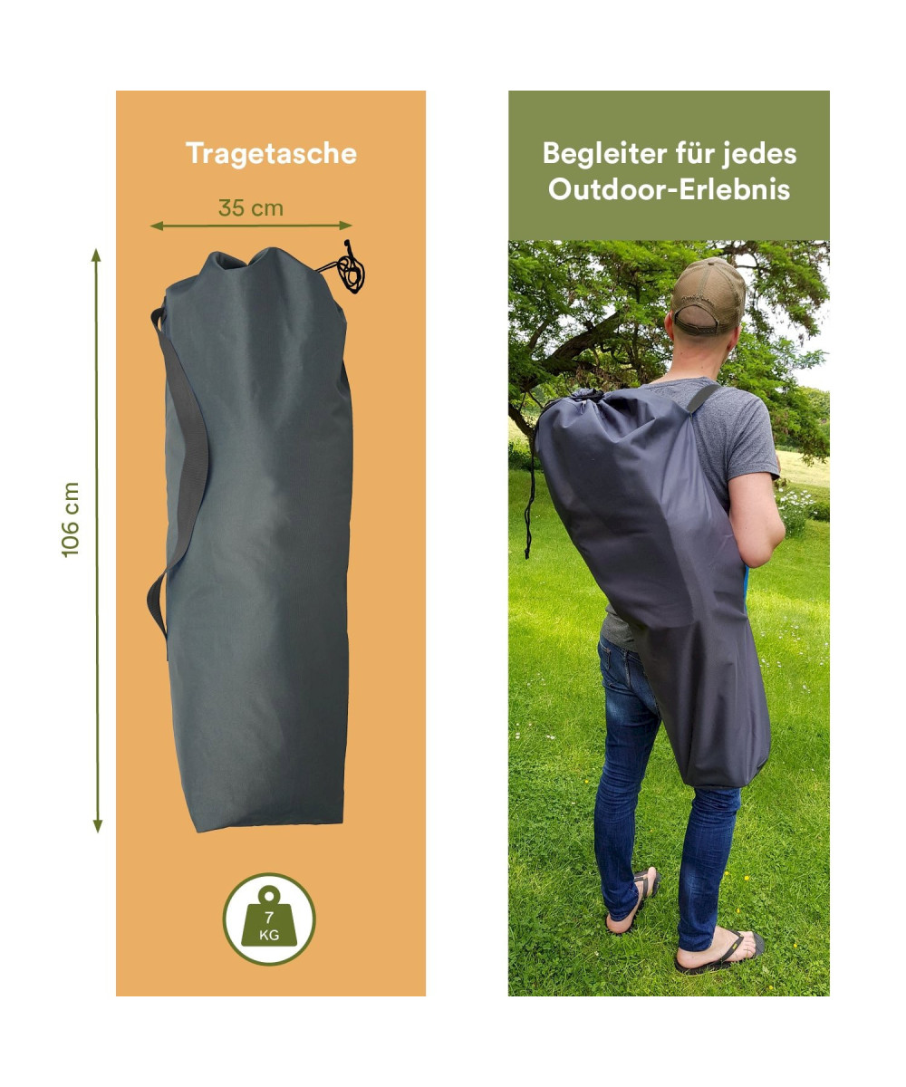 Ce siège pliant aux dimensions XXL est rond comme la lune et confortable comme un nuage! Ce superbe siège de camping supporte un poids sensationnel de 150kg. Vous pouvez vous asseoir en toute sécurité et vous relaxer. C’est un compagnon idéal pour les vacances en camping, pour les pique-niques, sur la plage ou à la pêche – le siège Moonchair Deluxe avec son immense assise vous accompagne de manière fiable et confortable. Après son utilisation, le siège peut être plié facilement, transporté et rangé dans son sac de transport.