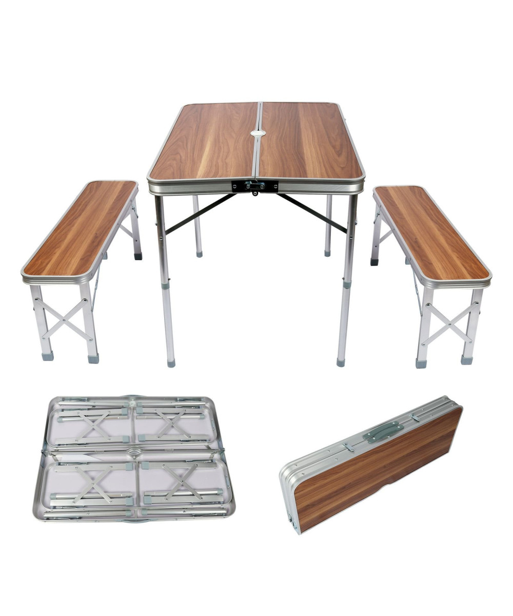 Que ce soit pour faire du camping ou organiser des fêtes dans votre jardin ou voisinage ou pour d'autres occasions, ces sièges vous seront d’une aide précieuse. De design chic, la table et les bancs se caractérisent par une grande stabilité et résistance, conférées par sa fabrication en aluminium et aux panneaux MDF robustes. Par ailleurs, les capuchons de protection garantissent un bon équilibre de la table avec une protection contre les rayures.