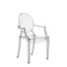 Un fauteuil à accoudoirs confortable en polycarbonate transparent et coloré, inspiré de l'époque du roi Louis XVI. Un hommage moderne au style Baroque à la fois fascinant et étonnant, dessiné par le designer vedette Philippe Starck.