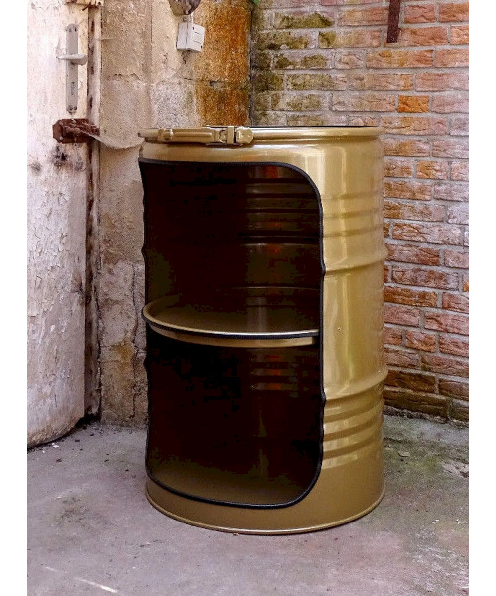 Étagère baril d'huile design 210L avec 2 douilles de lampe doré