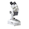 L'éclairage LED peut être réglé à l'infini. La hauteur de la surface de travail est de 63 mm minimum et de 100 mm maximum. Vous pouvez régler le grossissement en un simple tour au niveau de la lentille, à 20x, 40x ou 80x. La loupe binoculaire est facile à régler à la distance de l'œil et l'oculaire a une correction oculaire à action rapide. Pour d'autres grossissements plus importants, d'autres oculaires sont disponibles en option.