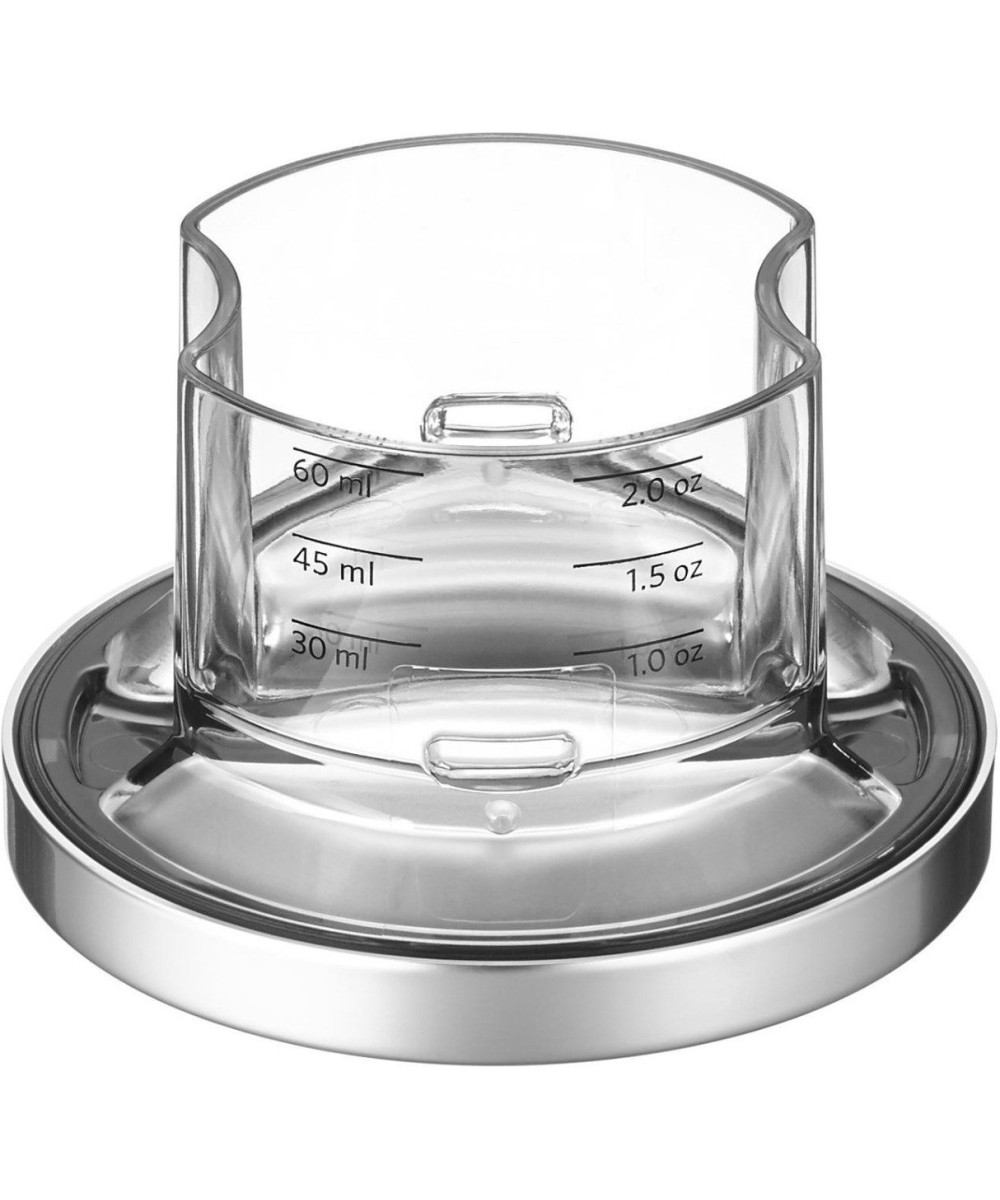 Ce couvercle en silicone s’adapte parfaitement au bol pour limiter les éclaboussures, même les plus infimes. Il est facile à retirer et à nettoyer et sa base solide l’empêche de se déformer. Grâce à sa conception aérée, il est également idéal pour mélanger des soupes chaudes. Un bouchon-doseur en métal moulé vous permet d’ajouter des ingrédients à la volée pendant que vous mélangez. - Poussoir à bord flexible