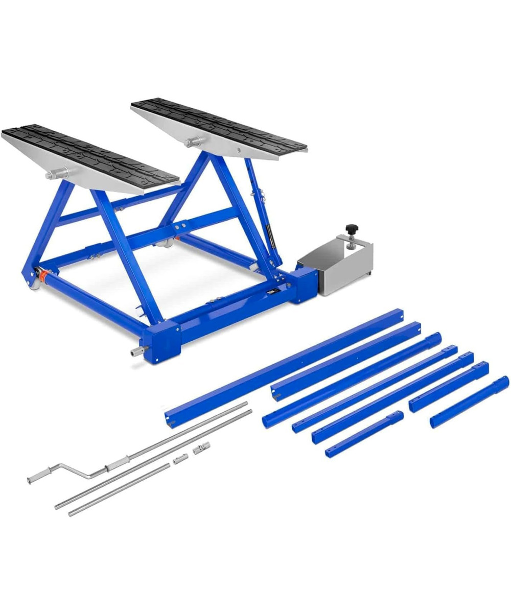 Cette plateforme élévatrice est faite d’acier ultrarésistant, un métal gage de solidité et de durabilité. Grâce à sa structure robuste, elle soulève sans difficulté les véhicules les plus variés de 1 500 kg ou moins pour une courte durée. Toutefois, il est interdit de s’en servir pour soulever des véhicules pendant de longues périodes ; pour cela l’utilisation de chandelles est nécessaire. Quand les quatre roues sont soulevées en même temps, au moins deux personnes doivent être présentes.