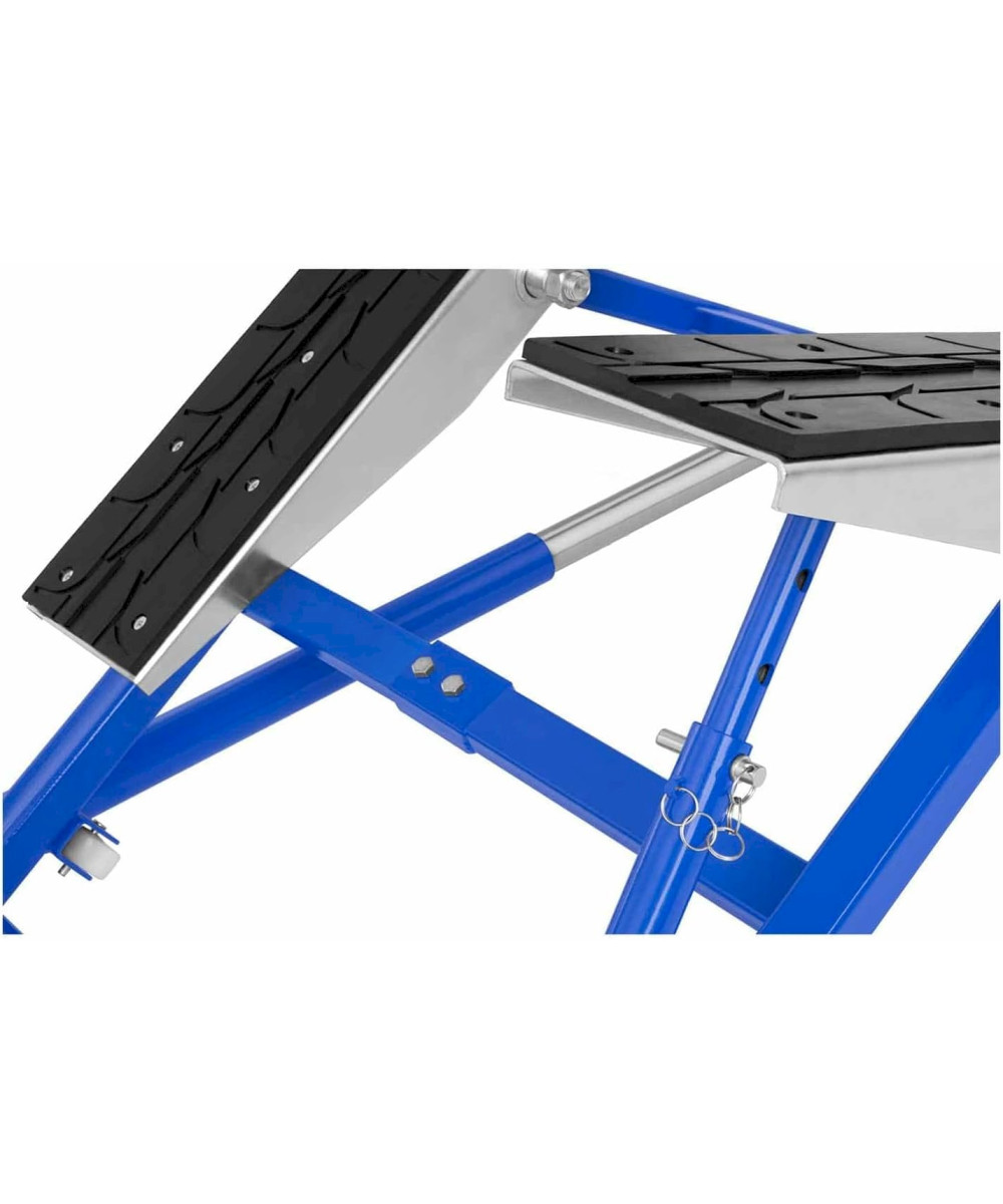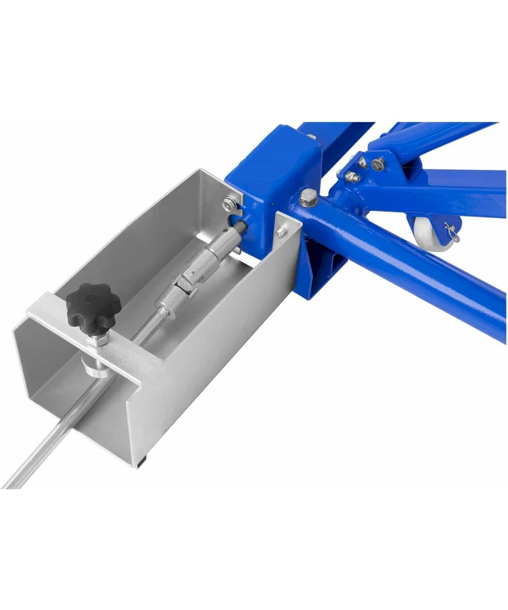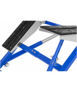 La table élévatrice mobile MSW-HB-1500 est idéale pour soulever temporairement les véhicules dans les ateliers de mécanique automobile. Il suffit de la glisser sous la voiture ou le camion à soulever, puis de la déployer à l’aide du mécanisme à manivelle. Elle ne requiert donc ni compresseur, ni alimentation électrique. Le véhicule peut être incliné sans difficulté vers l’avant ou vers l’arrière, selon les besoins. À l’aide de cet outil, il est possible de pencher et de soulever jusqu’à quatre roues simultanément. La plateforme se règle sur trois positions différentes. Elle vous procure une flexibilité accrue et facilite grandement les opérations de pose, de dépose et de réparation. Ce produit MSW est donc tout indiqué pour l’usage industriel et privé.