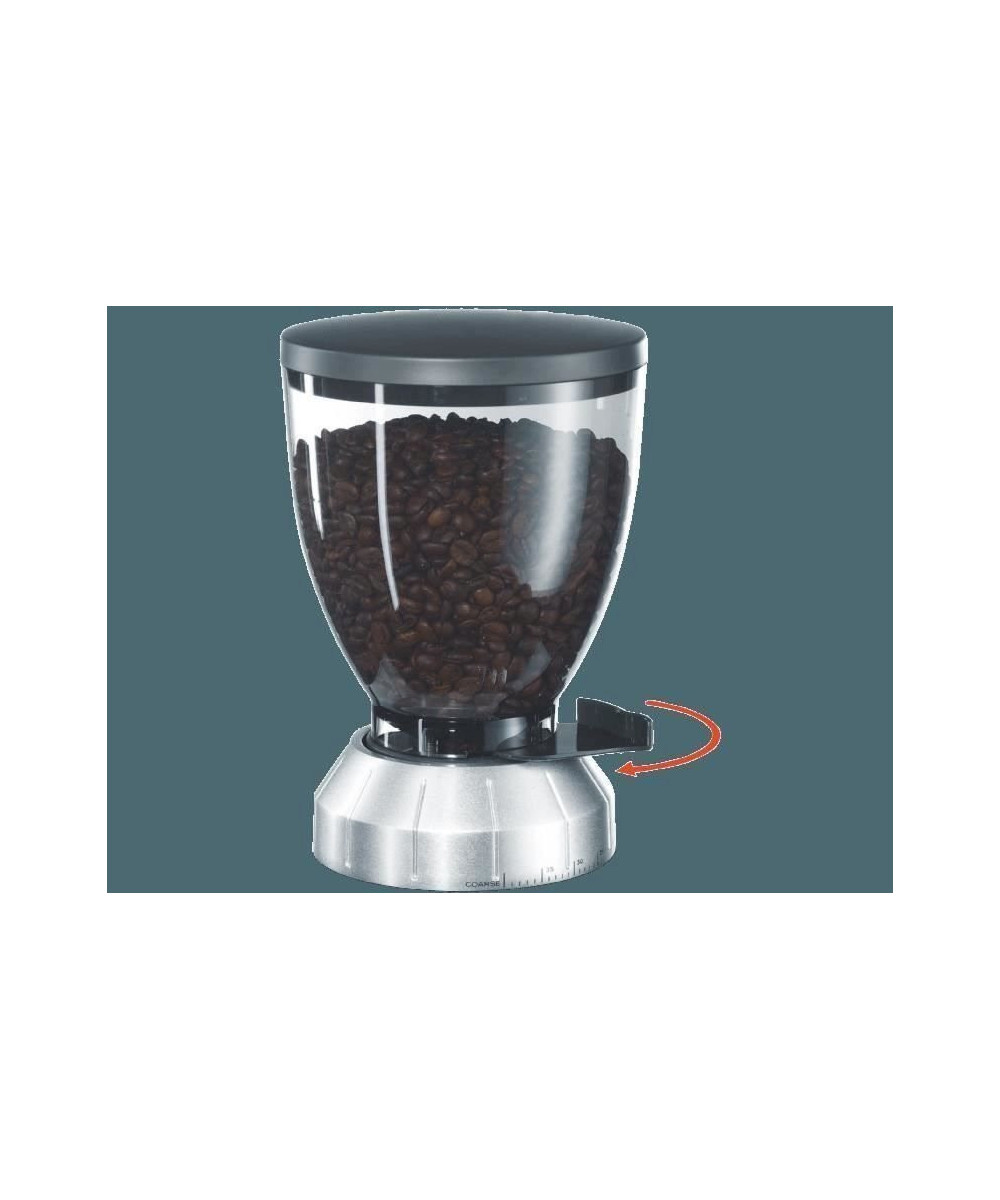 Grâce à cette interrupteur et le choix de la taille de mouture, ce moulin peut également vous servir une quantité plus significatif de café avec une mouture plus épaisse suivant votre type de cafetière ( mouture pour cafetière italienne, cafetière à piston ou cafetière filtre ).