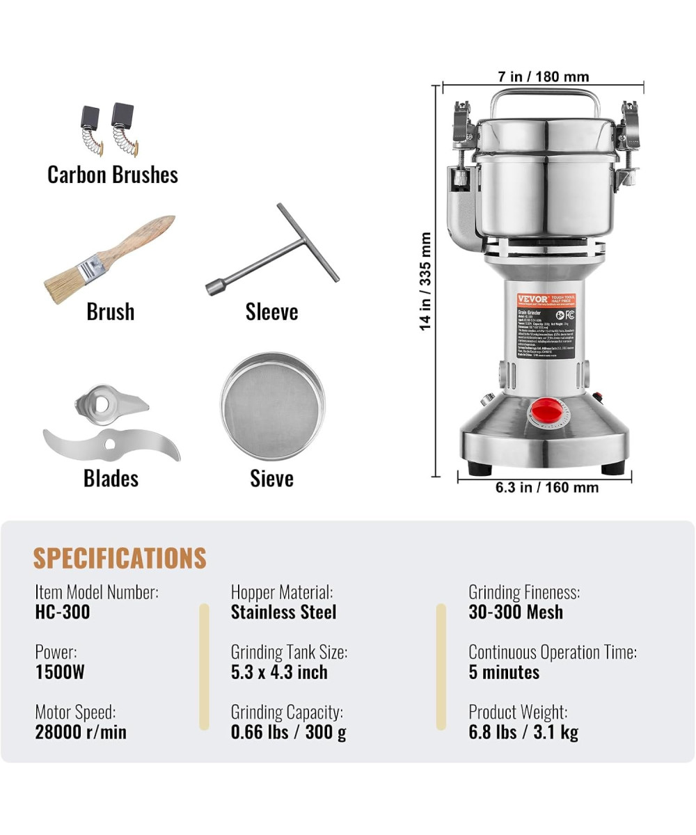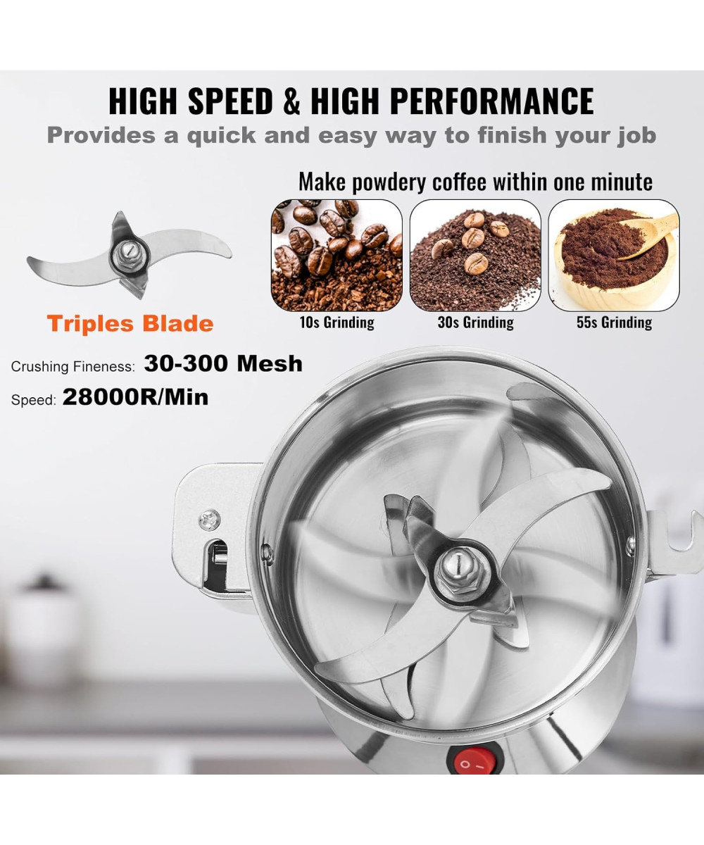 VEVOR Moulin à Épices Commercial 300 g Broyeur à Grains Électrique Haute Vitesse