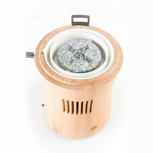 Un plaisir pour chaque cuisine. Le moulin éléctrique MONA. Elle est esthétique, crée avec sa meule de 90 mm de la plus fine farine - même de mais - avec style et en appuyant sur le bouton.