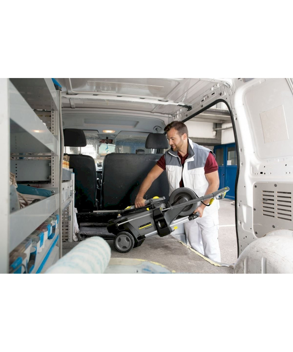 Les nouveaux nettoyeurs haute pression Karcher à eau froide de la gamme Professional sont des modèles de dernière génération qui offrent une grande polyvalence d'utilisation grâce aux grandes roues et une comode poignée rallongeable. Ils présentent plusieurs compartiments de rangement pour le pistolet, ainsi qu'une lance. Design innovant et moderne.