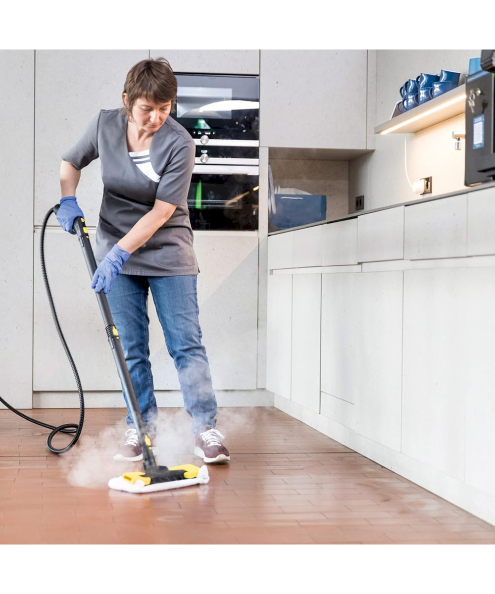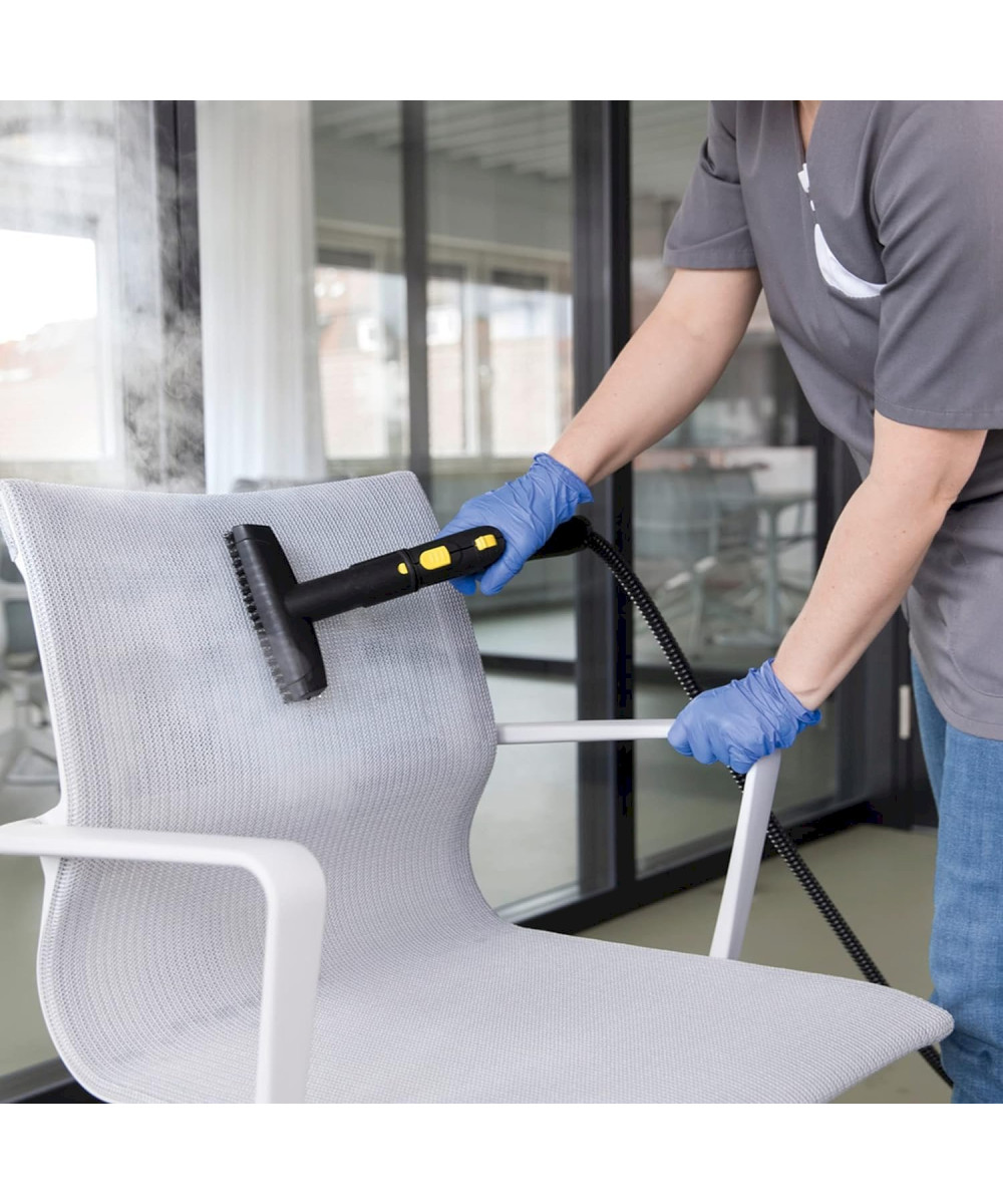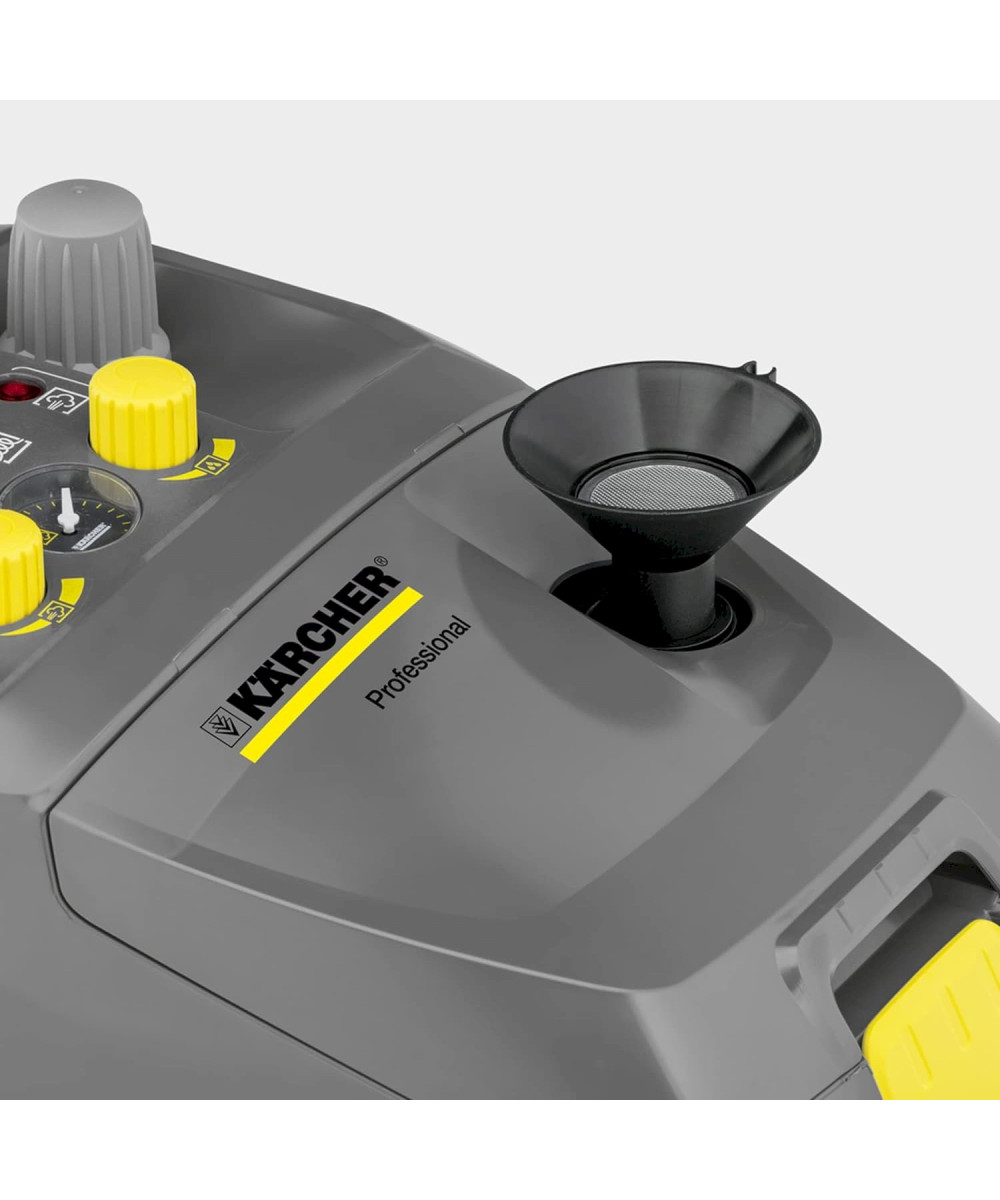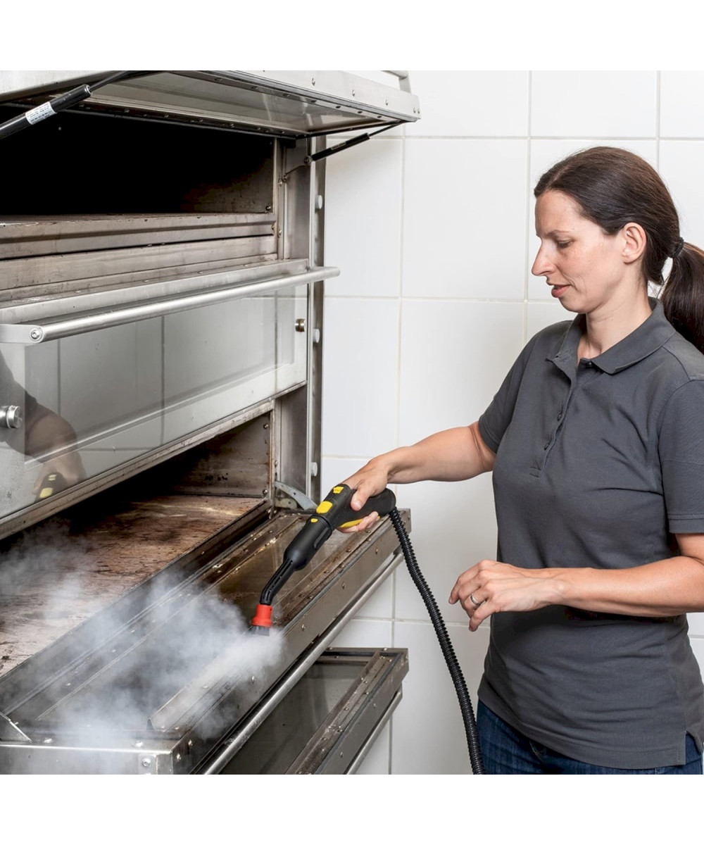 Le nettoyeur vapeur professionnel SG 4/4 est idéal pour les petites surfaces nécessitant un nettoyage en profondeur. Compact et maniable, il vous surprendra par son efficacité, grâce à sa pression vapeur de 4 bar. Dans le cadre d'un nettoyage approfondi, le SG 4/4 élimine les bactéries et garantit un nettoyage à la fois efficace et hygiénique, et ce, sans recourir à la chimie. Ses 4 L de volume de remplissage produisent environ 6 000 L de vapeur, pour un travail en continu. Grâce au système à 2 réservoirs séparés, le réservoir d'eau propre peut être rempli à n'importe quel moment sans avoir besoin d'attendre le refroidissement de l'appareil. Le temps de chauffe est court (< 10 minutes), pour une mise en service rapide. Avec sa large gamme d'accessoires, le nettoyeur vapeur professionnel SG 4/4 s'adaptera à nombreuses applications: cuisines, sanitaires, nettoyage des revêtements de soldurs ou élastiques, vitres, surfaces textiles ou encore meubles. Les tubes se fixent aisément sur l'appareil. Le flexible à vapeur de 2,5 m permet de travailler en hauteur sans soulever l'appareil. Un appareil aux multiples talents, utilisable dans le cadre de nombreuses applications. Nettoyeur vapeur certifié norme NF T72/110.