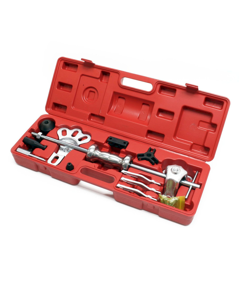 L’ensemble est polyvalent et s’utilise comme un extracteur interne ou externe avec 2 ou 3 griffes. Un set qui convient également au démontage des moyeux de roue à 4 et 5 trous et peut être utilisé comme marteau de percussion et marteau à inertie dans le secteur automobile et de carrosserie. Le set comprend les outils nécessaires pour ces travaux : marteau à glissière, marteau à inertie, deux adaptateurs de moyeu de roue, un extracteur à deux bras et un extracteur à trois bras, un extracteur à trois bras, trois mâchoires d’extraction, un adaptateur de pince-étau et un adaptateur de débosselage. Vous recevrez les outils bien rangés dans un coffret pour un usage pratique et mobile.