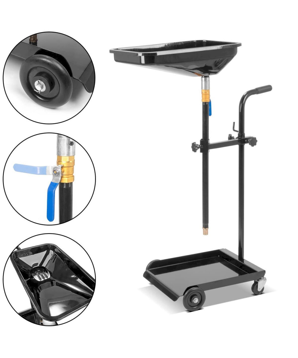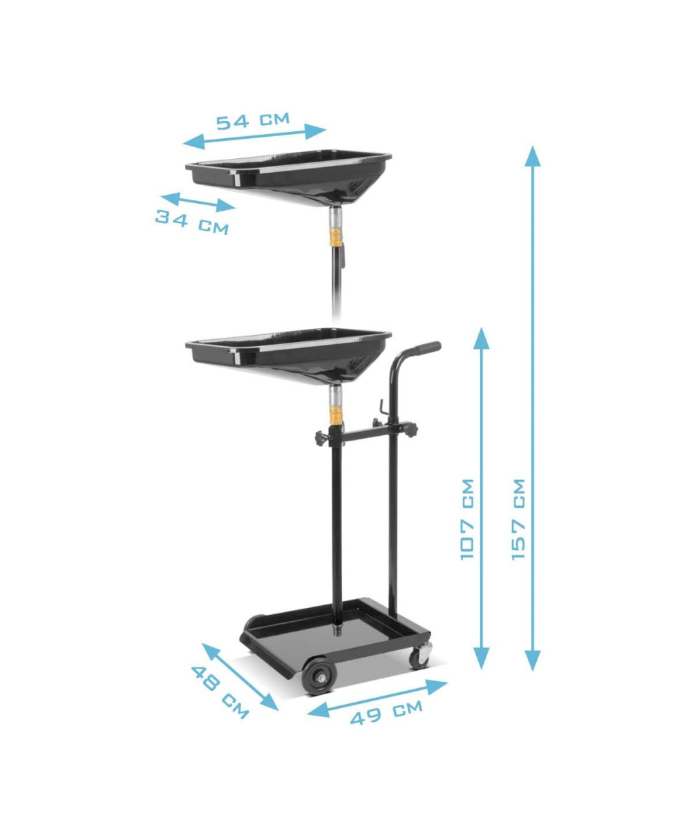 - Le chariot collecteur d'huile robuste est équipé de 4 roulettes stables et peut être manœuvré sans effort grâce à la poignée de poussée pratique et caoutchoutée.