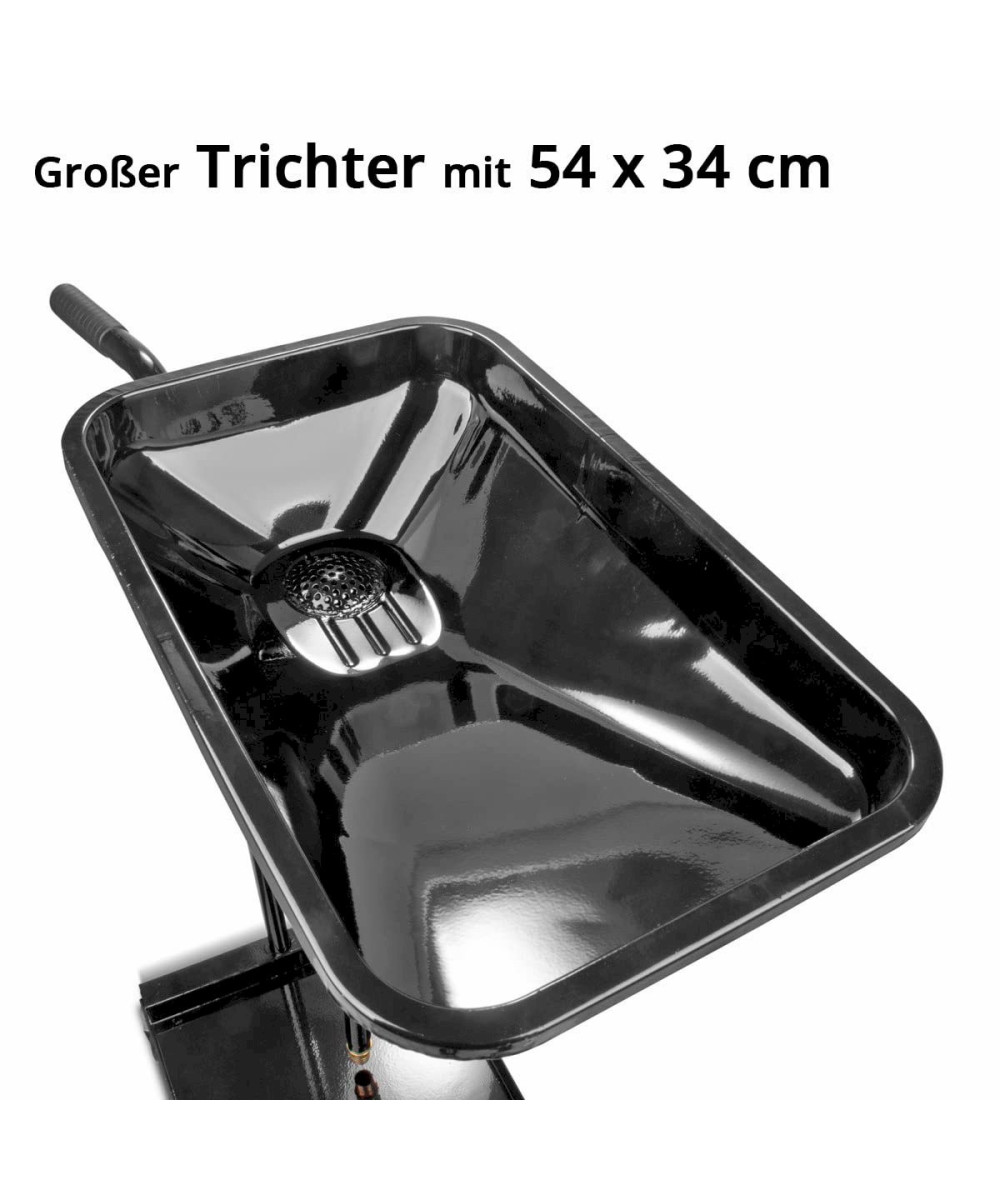 Der flexible STAHLWERK Ölauffangwagen OD-110 ST eignet sich mit seinem höhenverstellbaren und schwenkbaren Trichter ideal zum Auffangen von abgekühlten Altöl, Motor- und Getriebeöl beim Kfz Ölwechsel. Der große Auffangtrichter aus Stahl mit integriertem Sieb ist auf eine Ablaufvorrichtung montiert. Die Höhe des Trichters lässt sich je nach Fahrzeugtyp individuell von 107 cm bis 157 cm justieren und bietet maximale Flexibilität. Der robuste Ölauffangwagen ist mit 4 stabilen Rollen ausgestattet und lässt sich dank des praktischen, gummierten Schiebegriffs mühelos rangieren. Gefertigt aus rostfreiem Edelstahl überzeugt das kompakte Ölauffanggerät durch hohe Stabilität bei der Anwendung. Ideal geeignet für den professionellen Einsatz in Kfz-Werkstätten sowie im DIY Bereich.