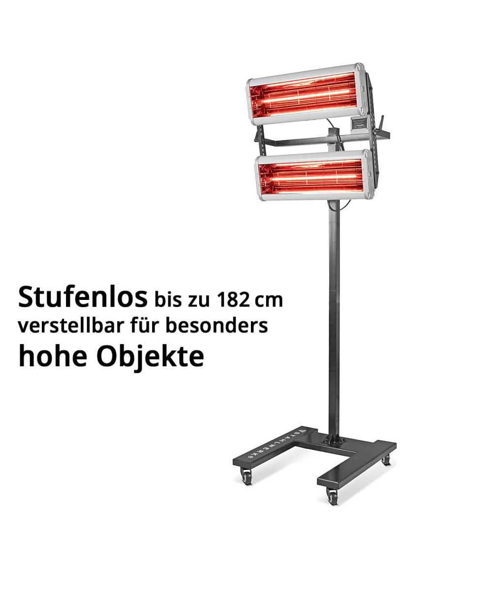 - STAHLWERK Sécheur de peinture infrarouge de 2400 watts avec trépied massif et roulettes pivotantes pour le séchage professionnel de la peinture automobile, du vernis, de la peinture industrielle, de la peinture de réparation, des apprêts, des peintures, des résines, etc.