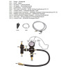Pumpe mit Manometer, Thermometer mit langer Sonde, Druckluftanschluss.
