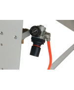 - Der Strahldruck beider Pistolen kann stufenlos über die zwei Druckregler eingestellt und an den Manometern kontrolliert werden