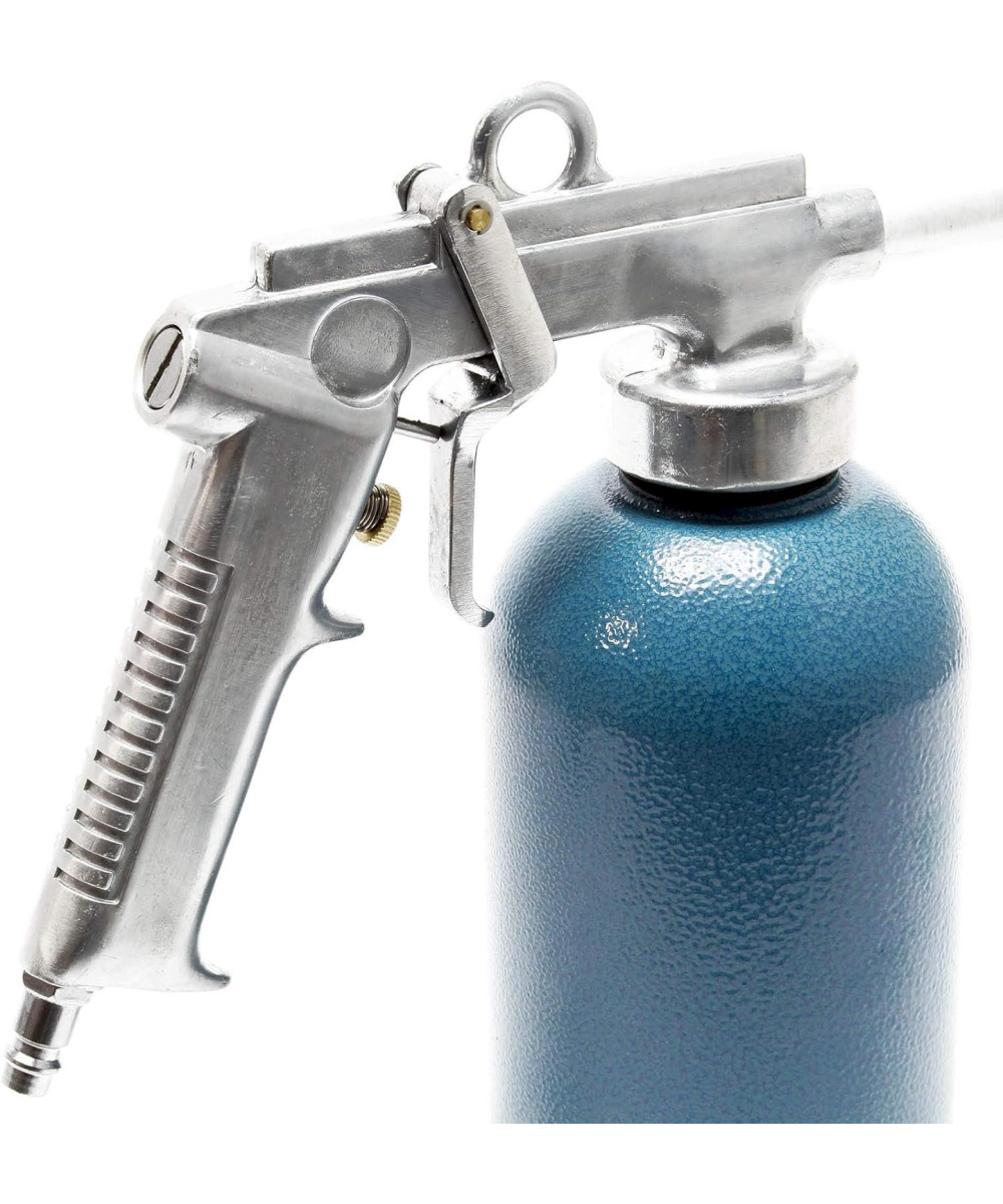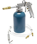 Avec une capacité de 1100 ml, plus besoin d’interrompre le travail pour remplir constamment le godet à pression. Celui-ci peut contenir suffisamment de produit à pulvériser. La tâche n’en sera que plus agréable et plus efficace. En optant pour ce pistolet, vous choisirez un outil à utilisation polyvalente grâce à l’étendu de la livraison : 2 tuyaux de rallonge avec des buses spéciales et un raccord à vis, qui se trouve dans le pistolet pneumatique, et qui est compatible avec tous les récipients standardisés dont la capacité est de 1 l.