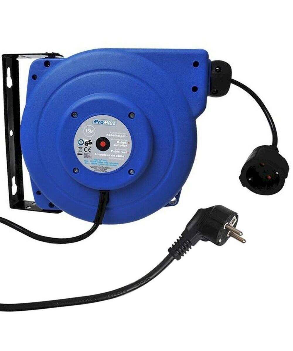 Cet enrouleur automatique 580786 de ProPlus contient un câble de 15 m. Il est équipé d'un système de verrouillage qui bloque le câble à la longueur désirée.