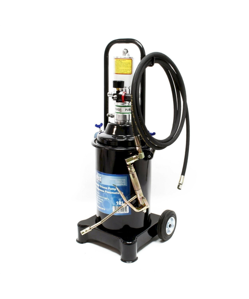 Ce pistolet à graisse professionnel dispose d'un réservoir de graisse de 12 litres. La lubrification avec ce pistolet graisseur est encore plus rapide grâce à l'entraînement par air comprimé. C'est pourquoi la presse pneumatique peut également être utilisée dans l'industrie. L'utilisation d'une seule main facilite grandement le travail. Le pistolet à graisse fonctionne avec de l'air comprimé de 6 à 8 bar et a un rapport de pression de 50:1, c'est-à-dire le rapport entre la pression d'entrée d'air et la pression de sortie de graisse.