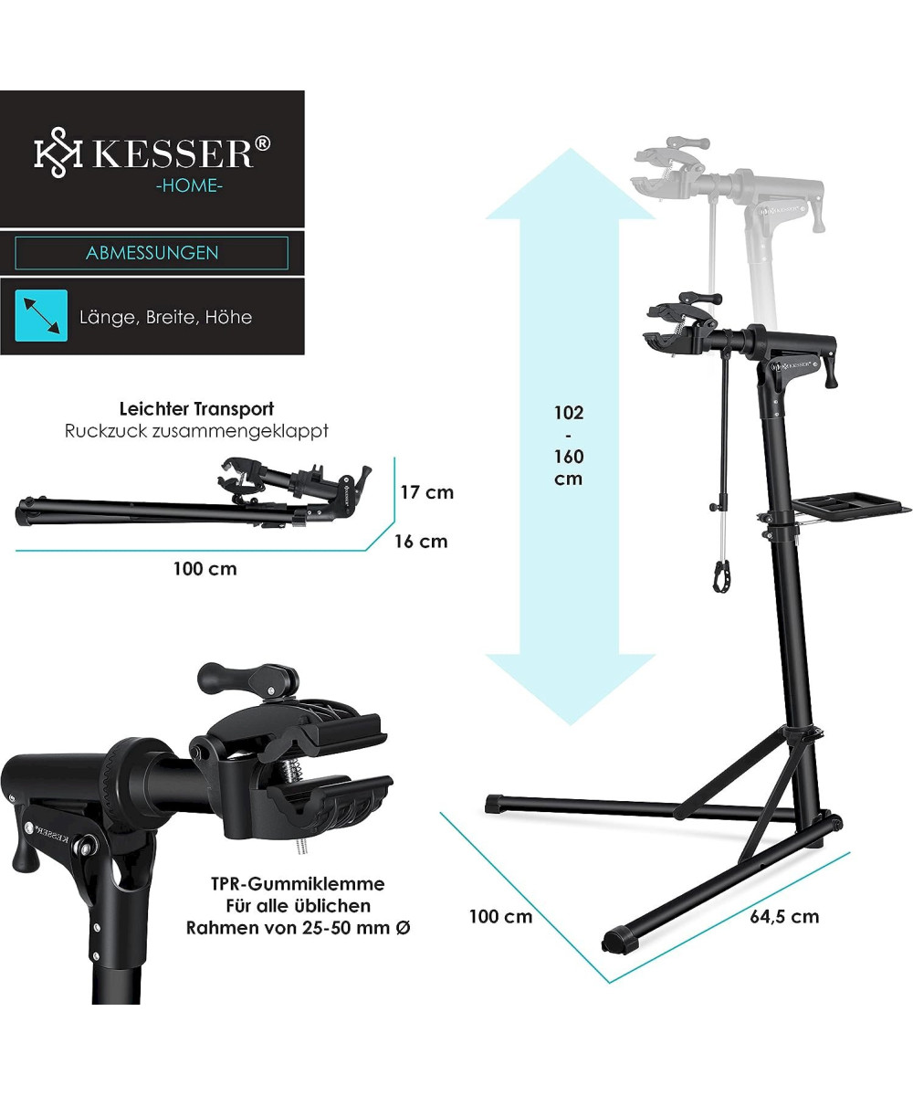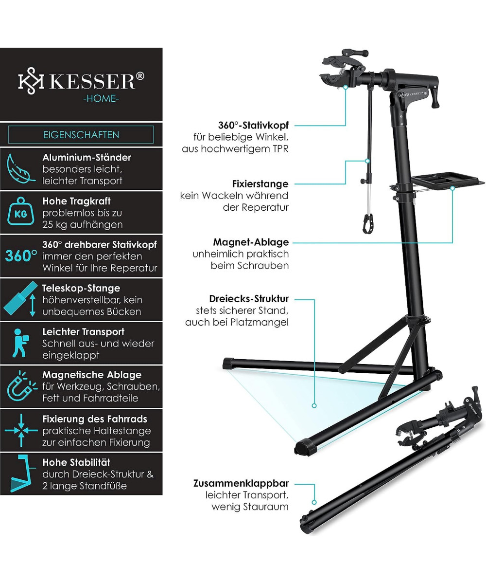 KESSER Béquille de Montage pour vélo Professionnelle en Aluminium noir