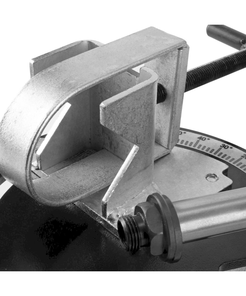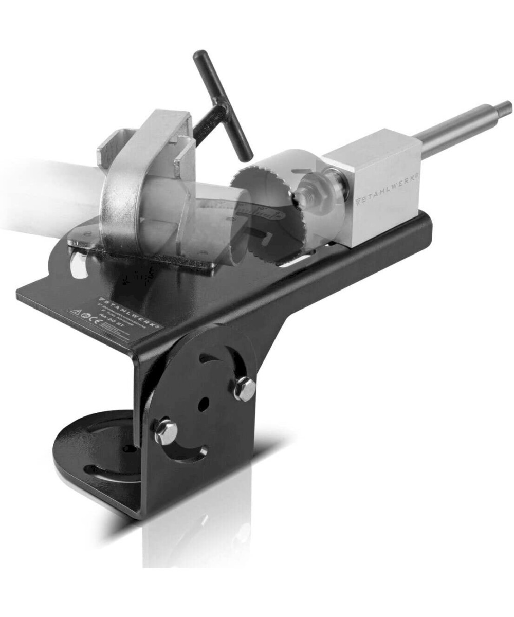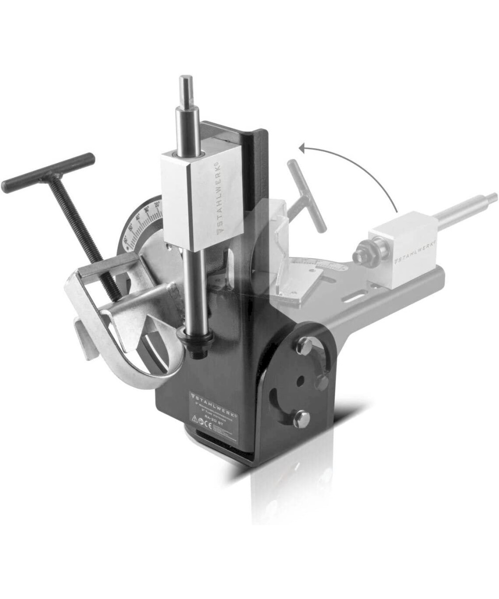 La STAHLWERK RA-20 ST est une machine de précision robuste pour réaliser des encoches sur des tubes métalliques. Dans le dispositif de serrage à étrier robuste de l'encocheuse de tubes, il est possible de fixer rapidement et facilement des tubes métalliques d'un diamètre maximal de 50 mm (2"). La plage de serrage du prisme à étrier couvre des diamètres de tuyaux de DN 20 (3/4") à DN 50 (2"). Les encoches sur et dans le tube sont réalisées à l'aide d'une scie cloche (non comprise dans la livraison). L'angle d'encochage est réglable de 0 à 60 degrés. La scie cloche est montée sur un boulon de guidage rectifié. Le boulon est monté sur roulement à aiguilles dans un bloc de guidage en aluminium. Cela évite le jeu de basculement lors de l'encochage de tubes et permet un travail précis. Toutes les pièces de l'encocheuse sont fabriquées en tôle d'acier robuste. Grâce à l'adaptateur de broche de 1/2 à 5/8 pouces, il est possible de monter différentes scies cloches.