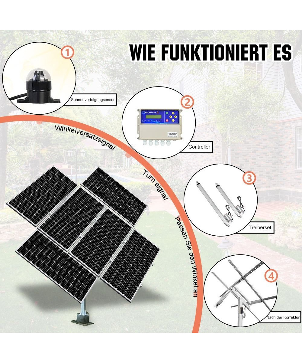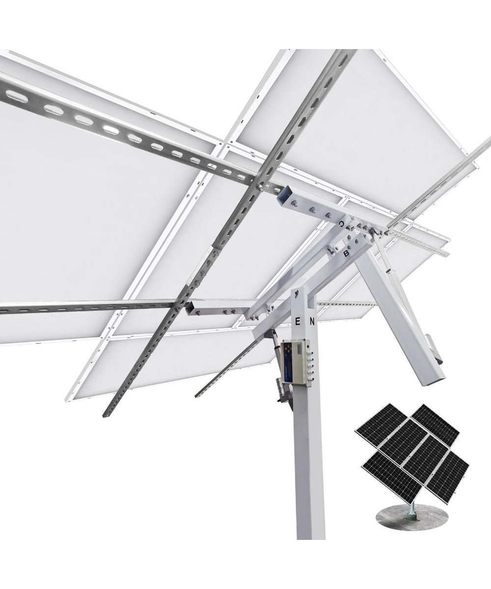 Le système de suivi solaire à deux axes ECO-WORTHY peut contrôler l'actionneur linéaire à deux axes pour que le panneau solaire suive la lumière du soleil. Gardez le panneau solaire toujours face à la lumière du soleil. Le contrôleur de suivi solaire à deux axes est un composant de base du système de suivi solaire à deux axes. Il peut fonctionner avec un actionneur linéaire 12V et permettre au tracker solaire d'améliorer considérablement la quantité d'énergie produite par un système en améliorant les performances du matin et de l'après-midi. Notre tracker solaire à deux axes avec détecteur météo intelligent, arrête de fonctionner les jours nuageux. Aplatissez le panneau solaire pendant la nuit ou les jours de pluie. Aplatissez le panneau solaire dans la tempête. C'est un système qui place les panneaux solaires en hauteur sur un poteau et les suit vers le soleil toute la journée. La production d'un suiveur solaire à deux axes augmentera la production annuelle d'environ 40 % par rapport à un système solaire fixe.