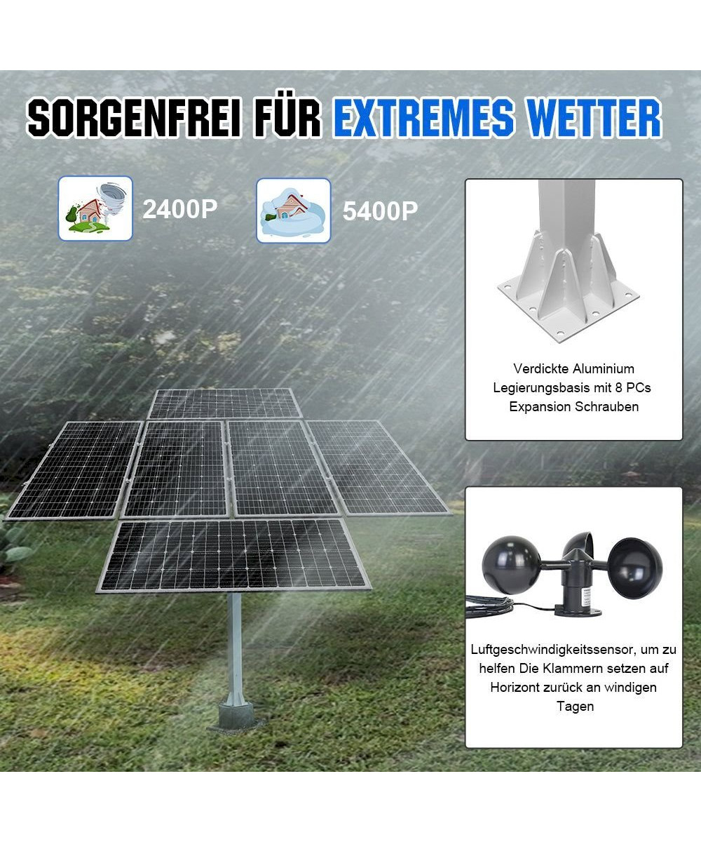 Le capteur de vitesse du vent intégré ajuste automatiquement l'angle des panneaux en cas de vents forts, assurant une stabilité optimale. Fixé au sol avec des vis d'expansion, le suiveur reste stable même lors d'ouragans ou de tempêtes. - Large gamme d'applications