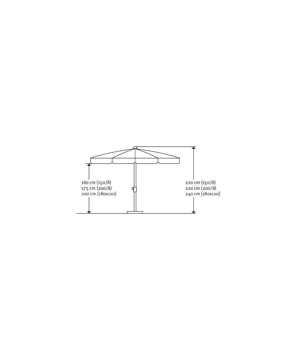 Kühlen Schatten an heißen Sommertagen bekommen Sie mit dem Sonnenschirm "Locarno", der mit seinem Volant eine tolle Gemütlichkeit ausstrahlt. Die Streben sind mit einem widerstandfähigen Material bezogen, welches sich durch seine Verrottungsfestigkeit und sein wasserabweisendes Verhalten auszeichnet. Da der obere Teil abknickbar ist, kann der Schirm immer ganz nach Sonneneinstrahlung ausgerichtet werden. Für den sicheren Gebrauch empfehlen wir einen Schirmständer mit einem Gewicht von mindestens 20 kg.