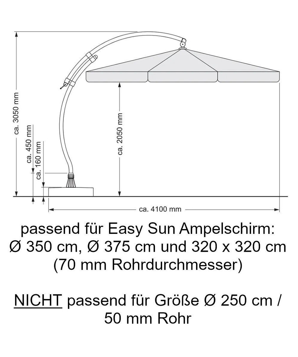 Exclusivement pour la variante de 350 cm du parasol Sun Garden Easy Sun TM, environ Volant de 15 cm de long des housses de parapluie. Un tissu surplombé donne à ce parasol un look classique avec un composant dynamique qui contraste avec le design plus moderne et plus sobre de la housse de parasol déporté Sun Garden Easy Sun TM de 375 cm.