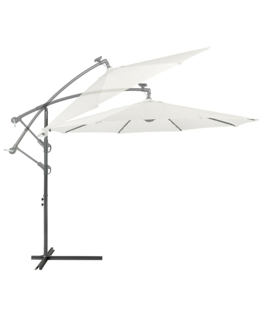 Le parasol suspendu avec éclairage LED d’Arebos est résistant à la décoloration et peut donc résister aux rayons UV puissants pendant très longtemps. Le tissu est en polyester avec un revêtement en PU. La résistance exceptionnelle des polyuréthanes aux effets des intempéries fait en sorte que l'eau de pluie s'écoule doucement du revêtement en tissu. La livraison comprend aussi une bâche pratique qui offre une protection supplémentaire au parasol pendant les mois d'hiver.